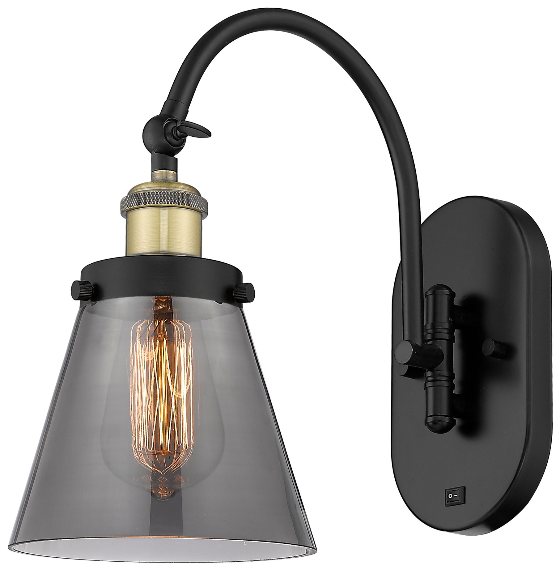 Franklin Restoration Cone 6" Smoke Shade Black Brass Incandescent Scon