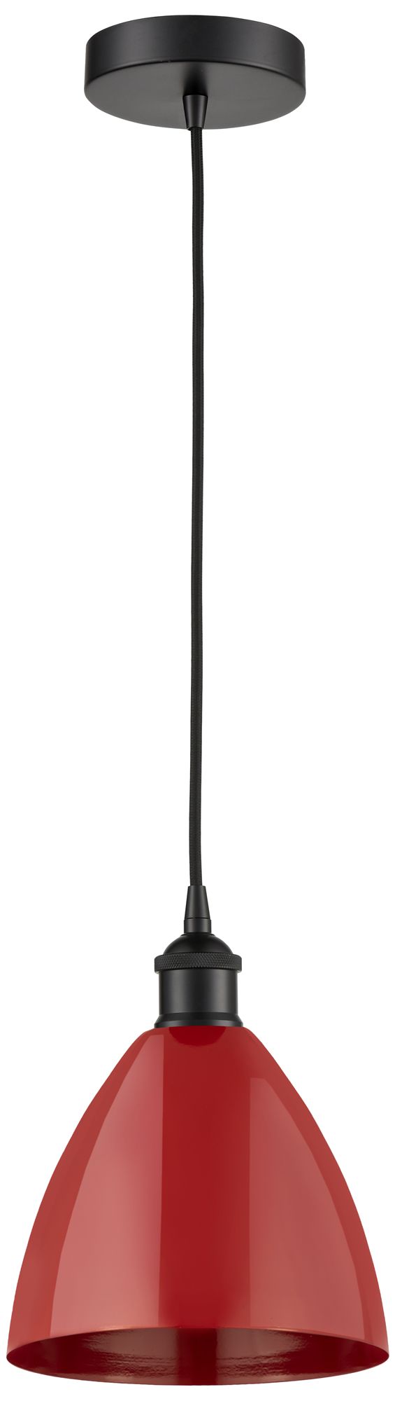 Plymouth Dome 7.5" Wide Matte Black Corded Mini Pendant w/ Red Shade