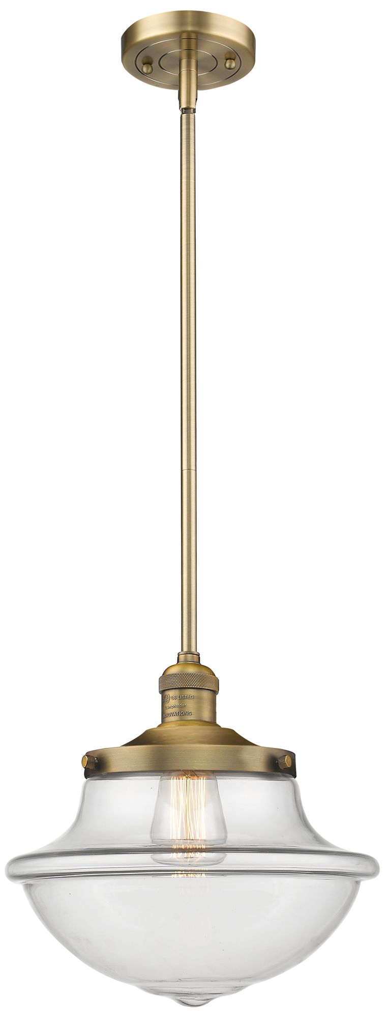 Franklin Oxford 12" Brushed Brass Stemmed Mini Pendant w/ Clear Shade