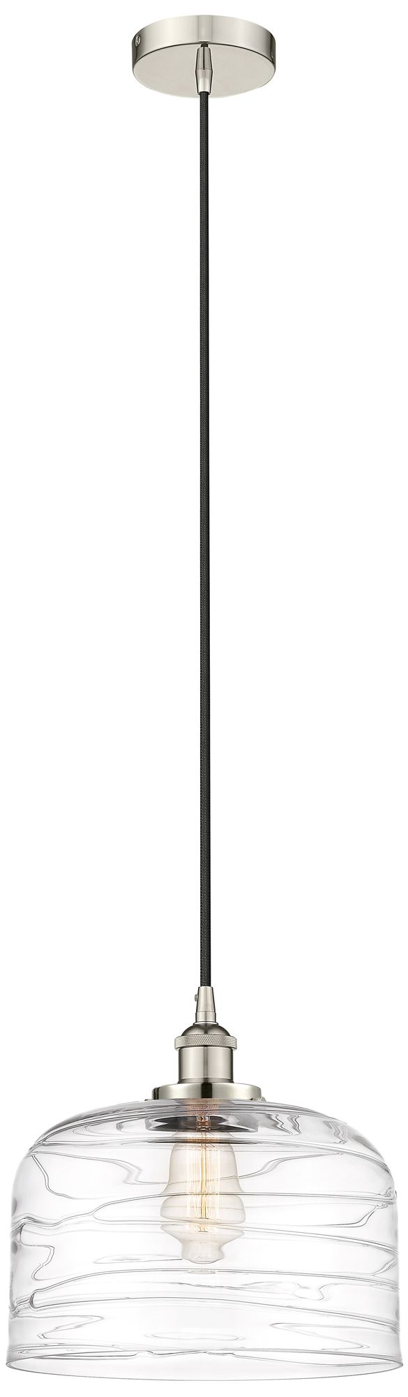 Bell 12" Polished Nickel Mini Pendant w/ Clear Deco Swirl Shade