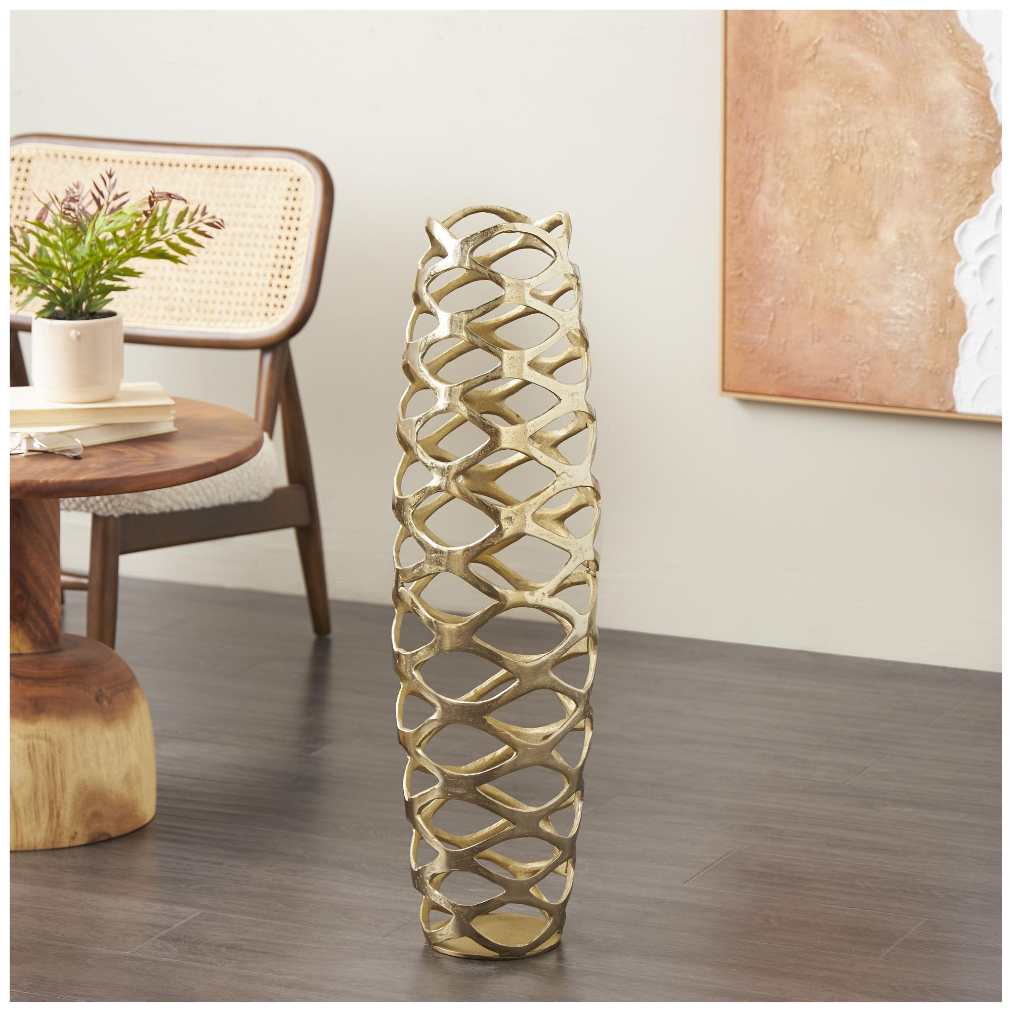 Gold Aluminum Metal Glam Vase, 9" x 9" x 33"