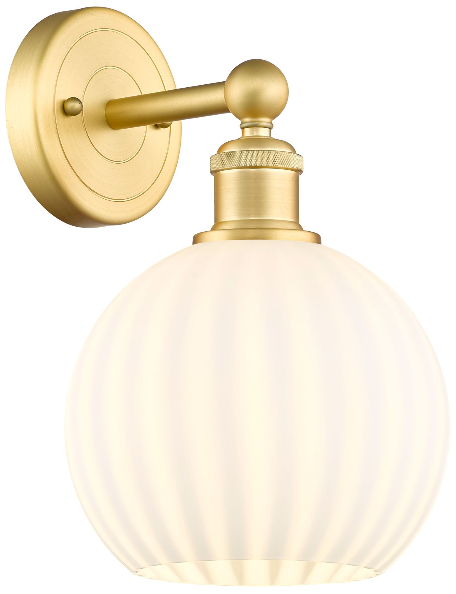 Edison 12.25" High Satin Gold Sconce With White Venetian Shade