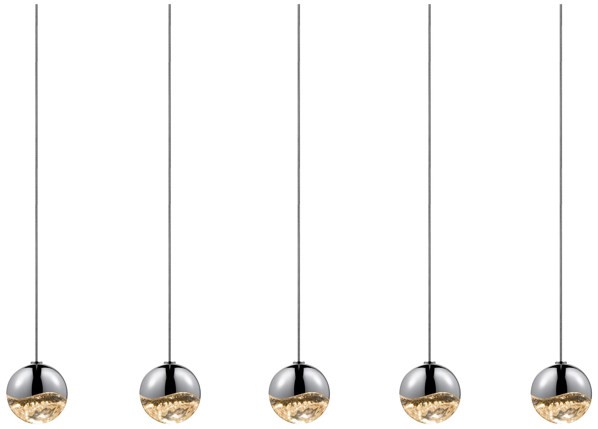 Grapes 36.5" Wide 5.Light Polished Chrome Small Rectangle LED Pendant