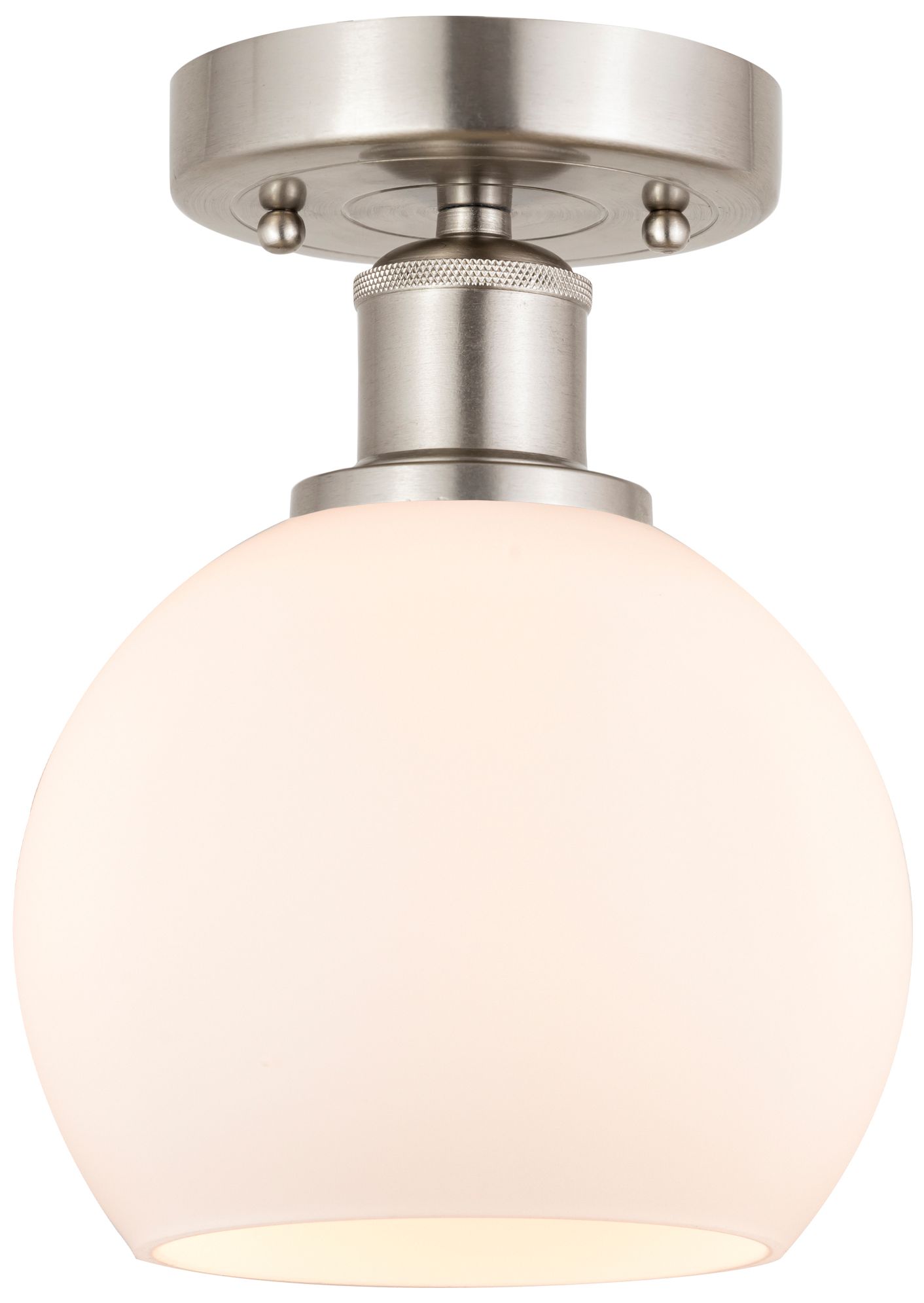 Edison Athens 6" Semi-Flush Mount - Brushed Satin Nickel - Matte Whit