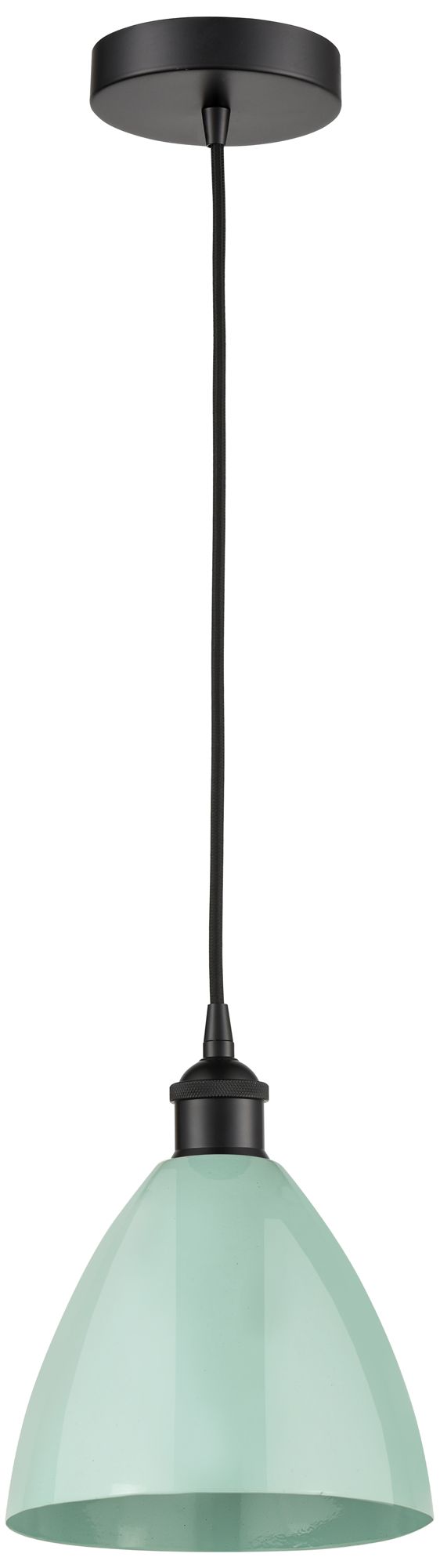 Plymouth Dome 7.5" Wide Matte Black Corded Mini Pendant w/ Seafoam Sha