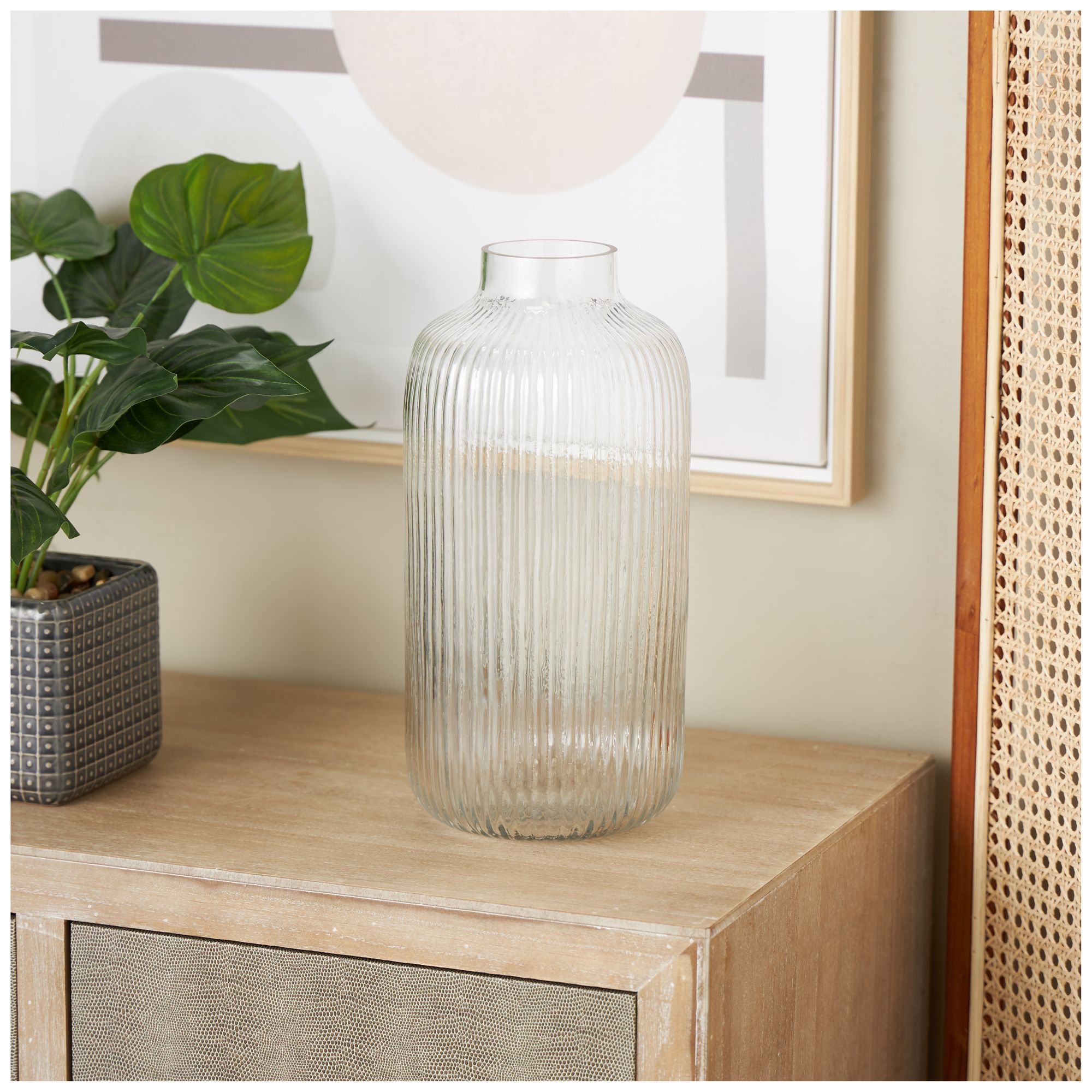 Clear Glass Contemporary Vase, 6" x 6" x 13"