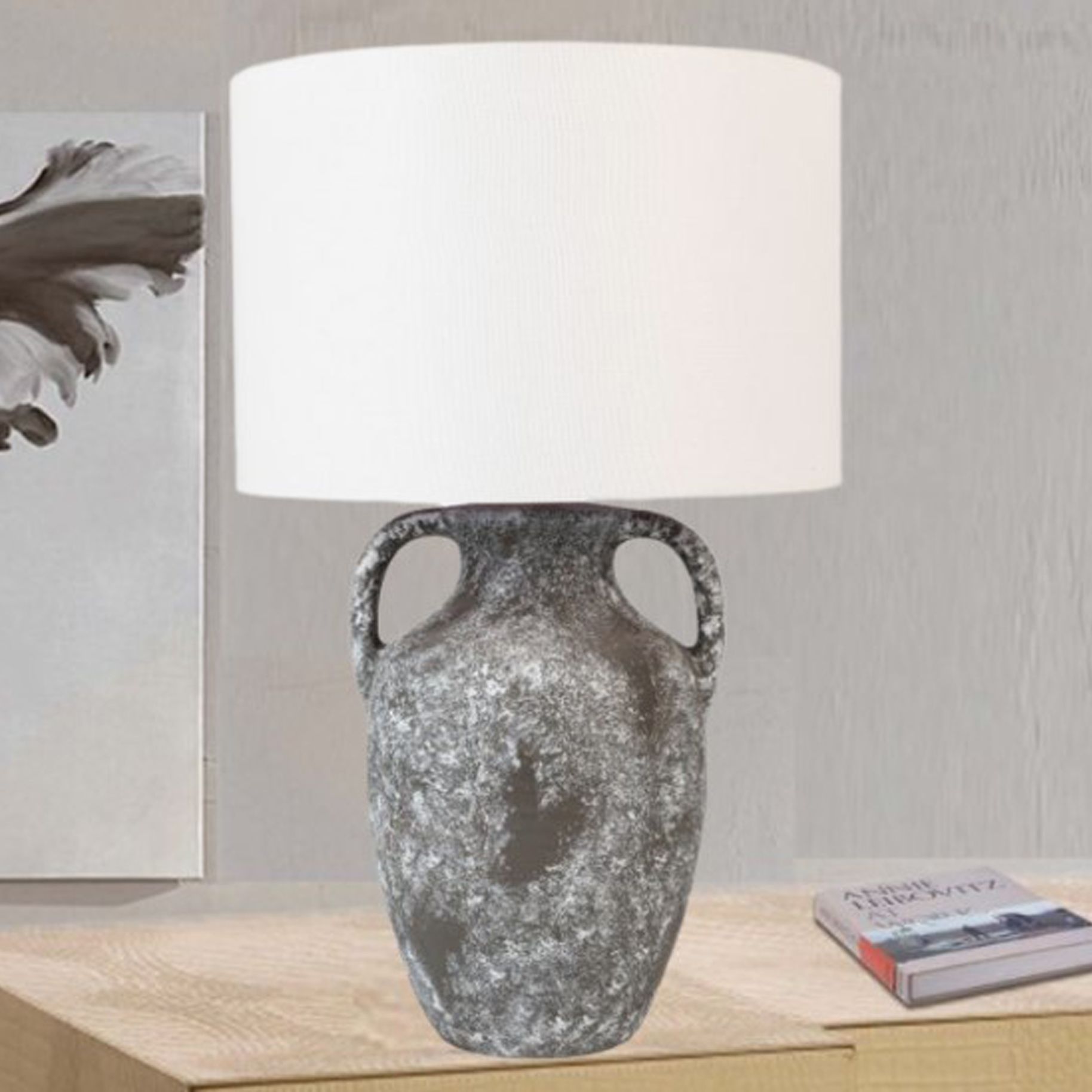 River Ceramic Rustic 24" Lamp in Twice Black Texture