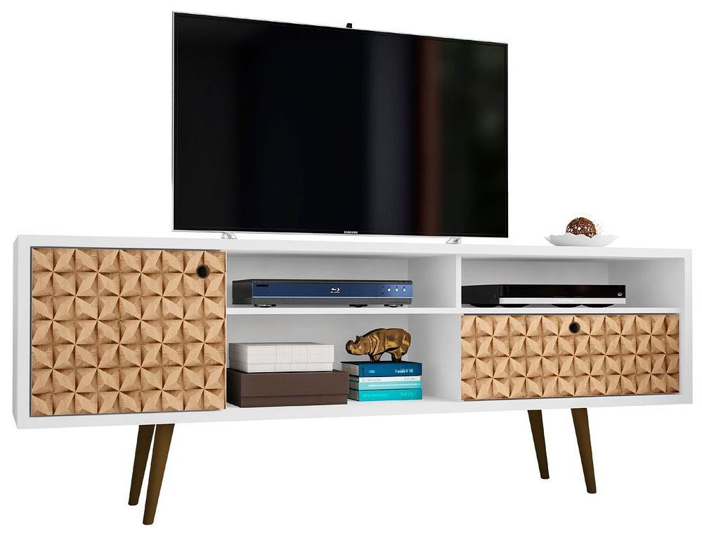 Liberty 70.86" Mid-Century Modern TV Stand in White and 3D Brown Print