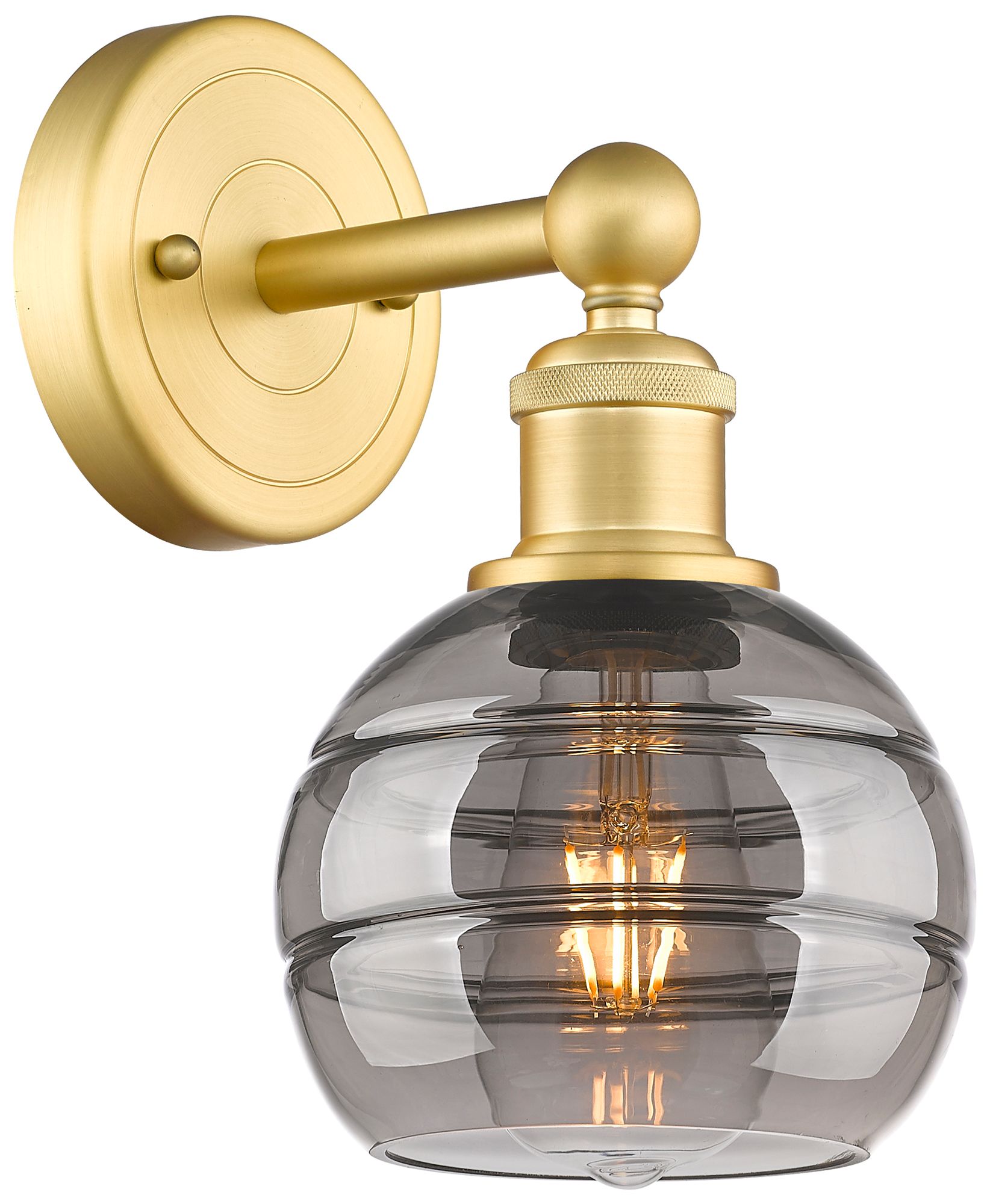 Edison Rochester 10.13" High Satin Gold Sconce With Light Smoke Shade