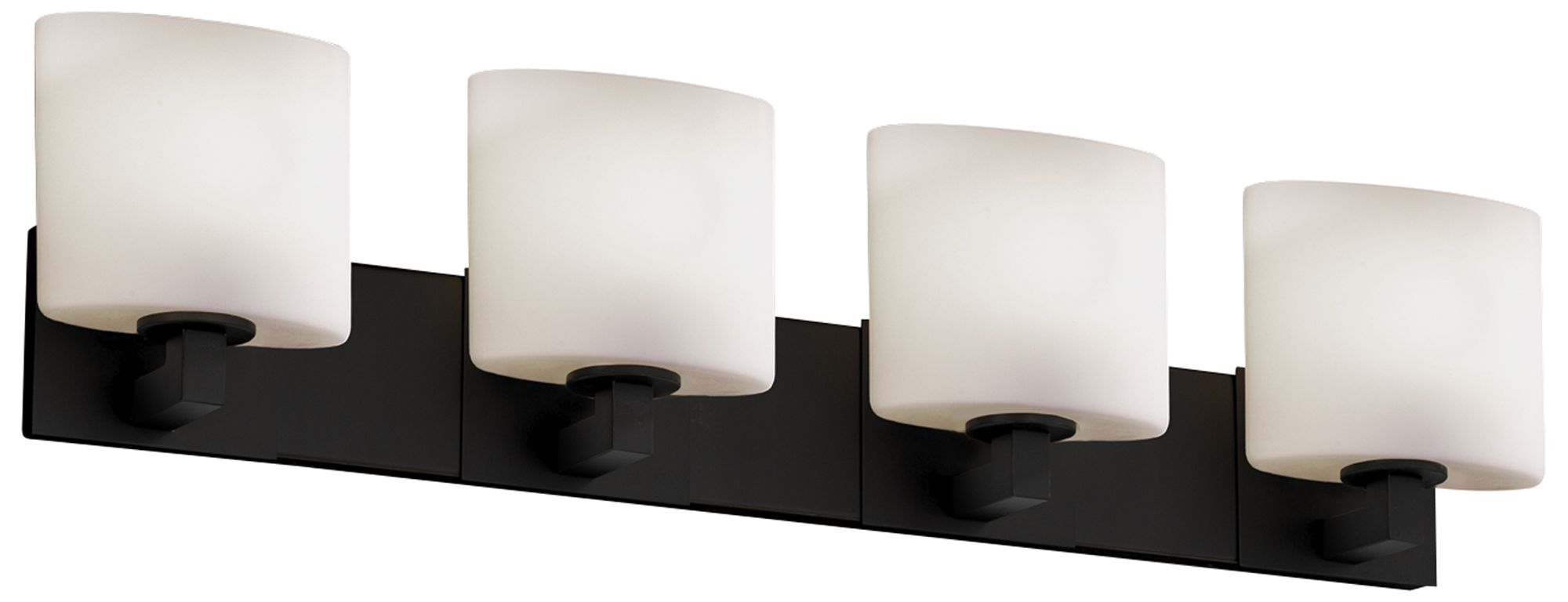 Justice Design Fusion 35 1/4" Wide Opal Glass Matte Black Bath Light