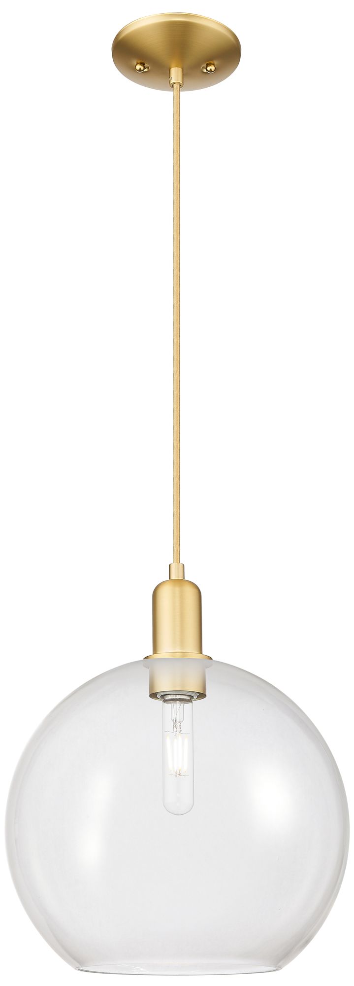 Arcadia Athens 12"W Satin Gold Cord Hung Mini Pendant With Clear Shade