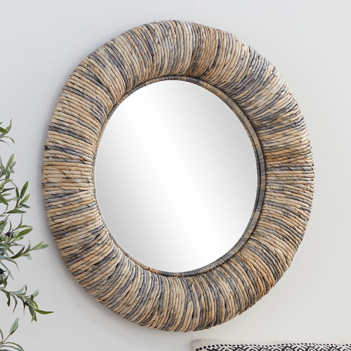 Capistrano Distressed Rope 35" Rustic Coastal Round Wall Mirror