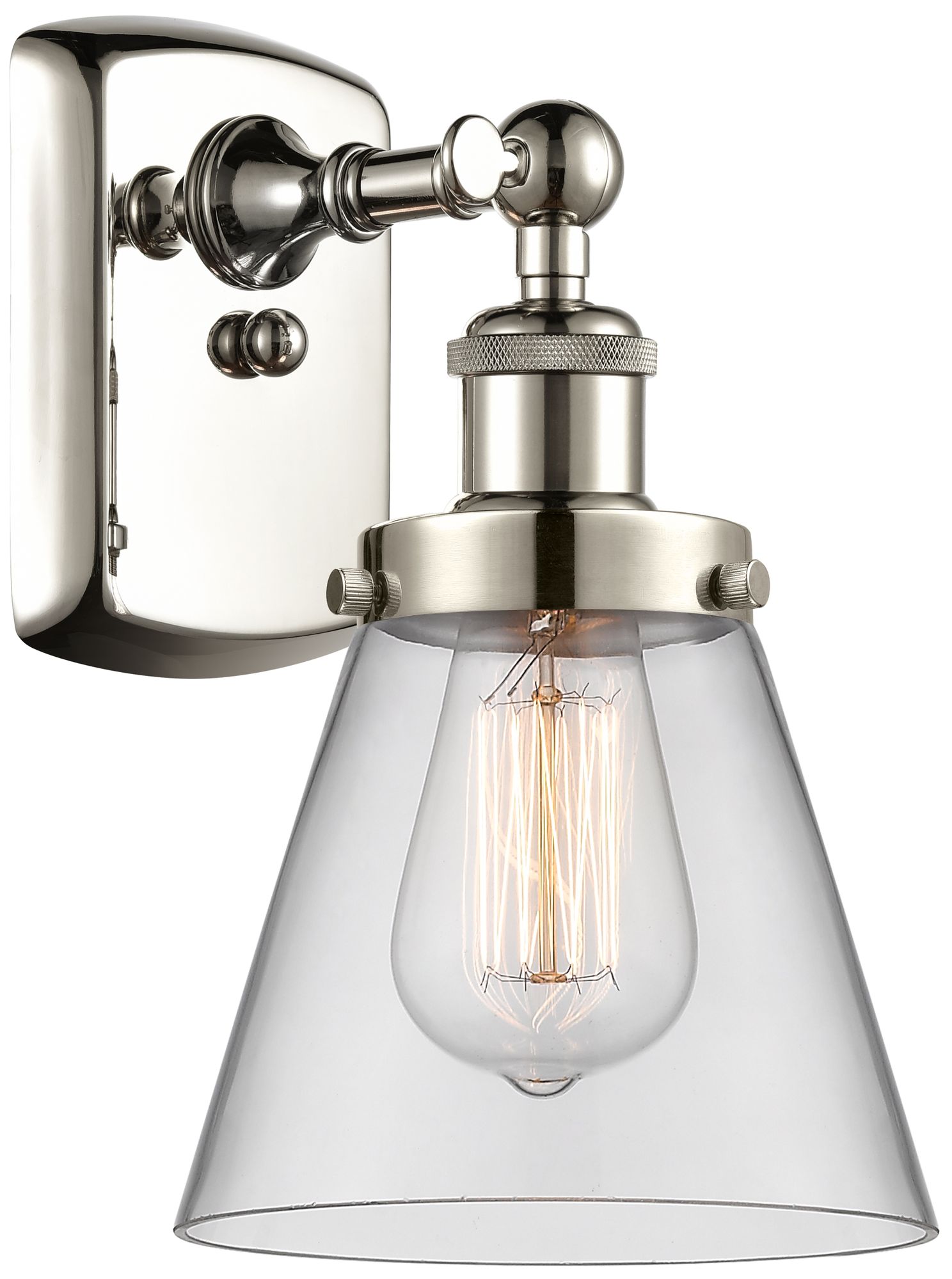 Ballston Urban Cone 11" High Polished Nickel Sconce w/ Clear Shade