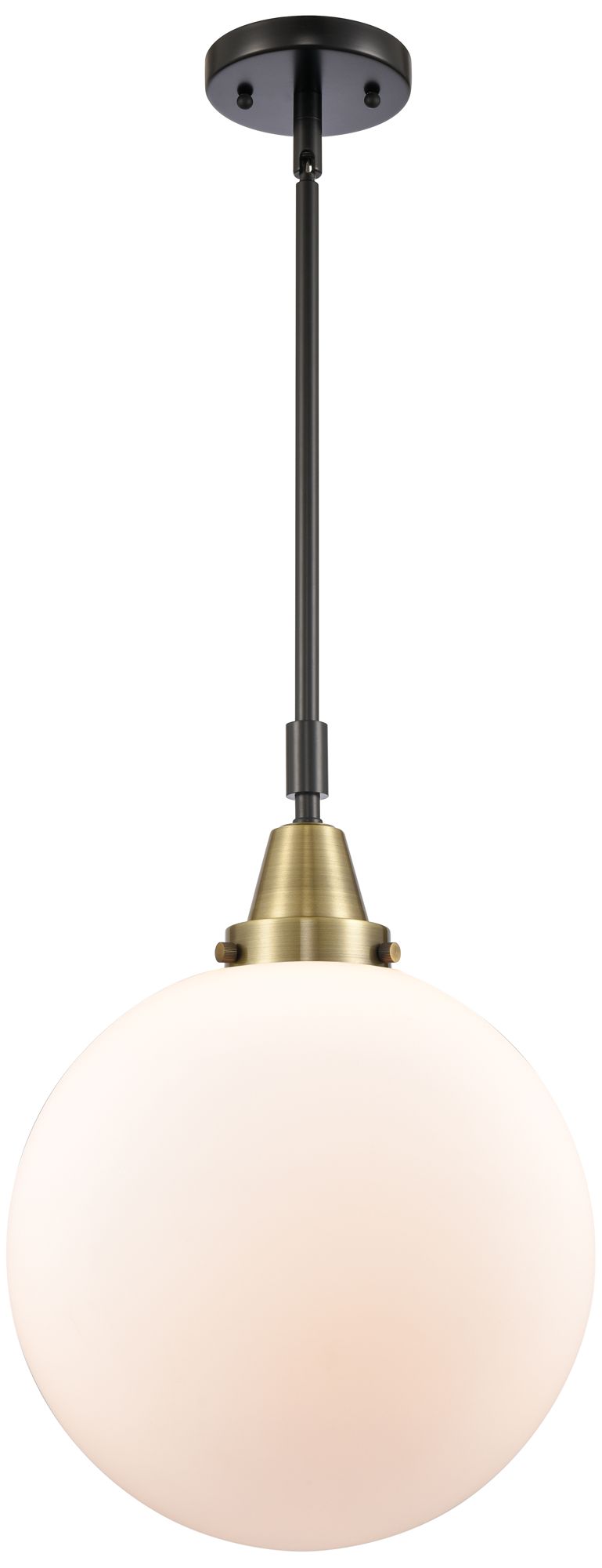 Caden Beacon 12" Wide Black Brass Stem Hung Mini Pendant w/ White Shad