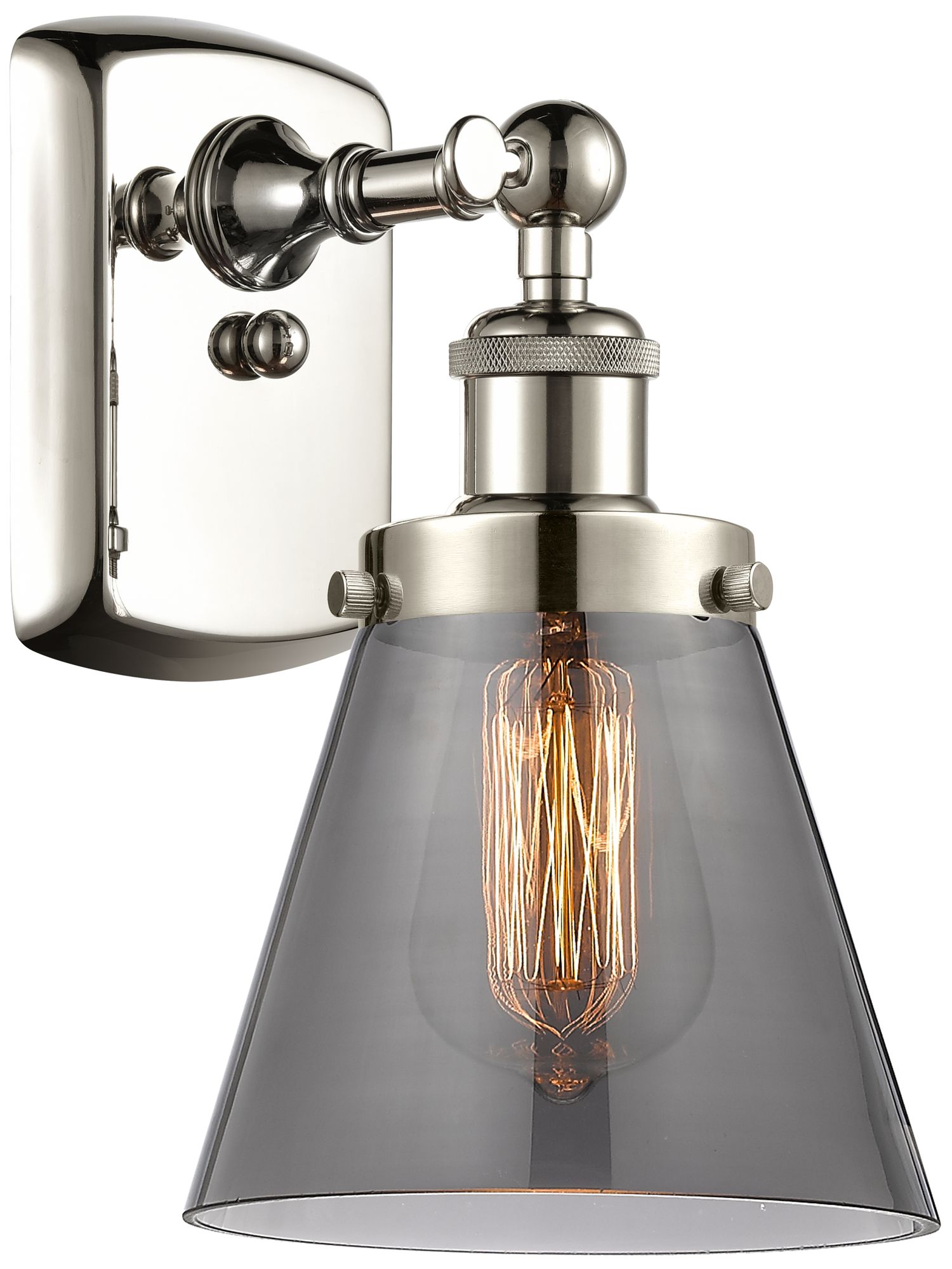 Ballston Urban Cone 11" High Polished Nickel Sconce w/ Plated Smoke Sh