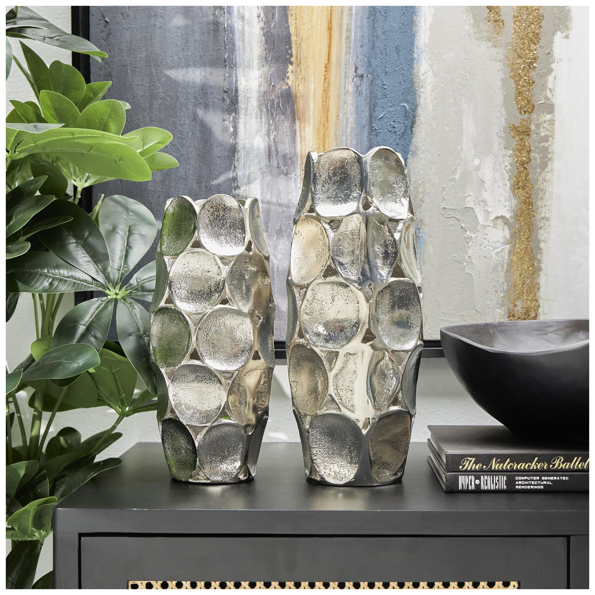 Silver Aluminum Metal Contemporary Vase, S/2 13", 11"H