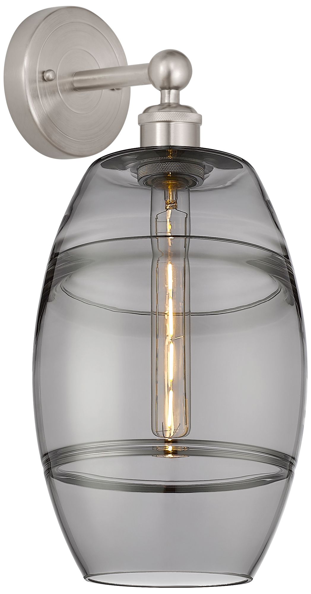 Edison Vaz 12.13" High Satin Nickel Sconce With Light Smoke Shade
