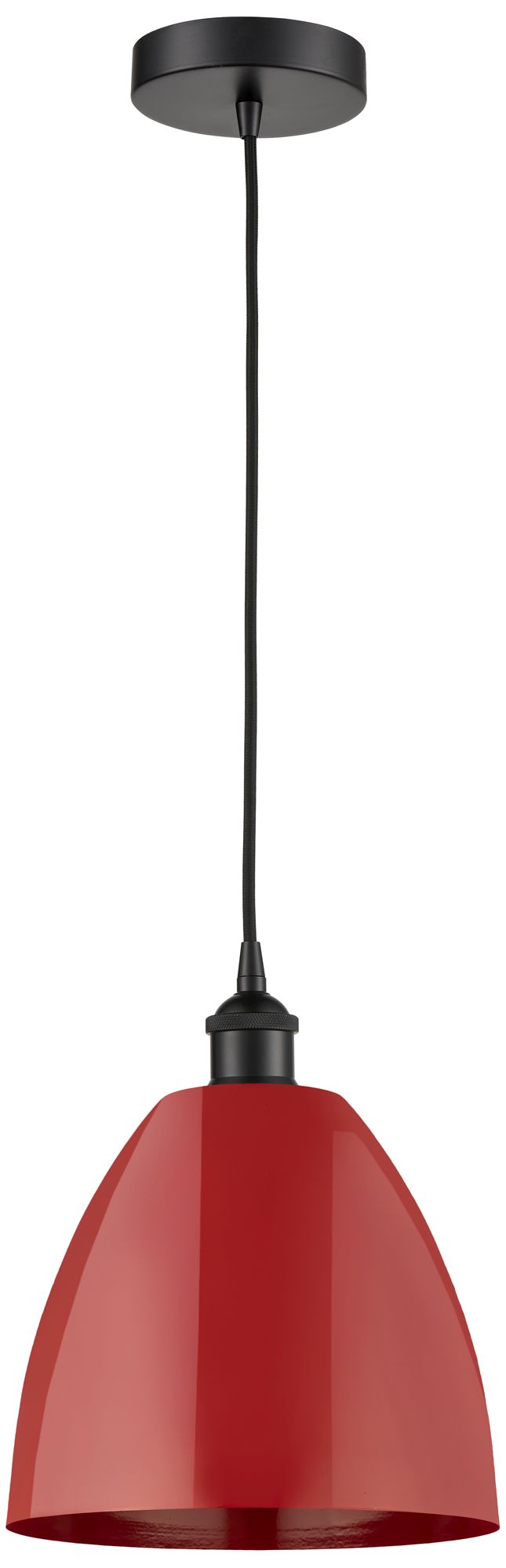 Plymouth Dome 9" Wide Matte Black Corded Mini Pendant w/ Red Shade