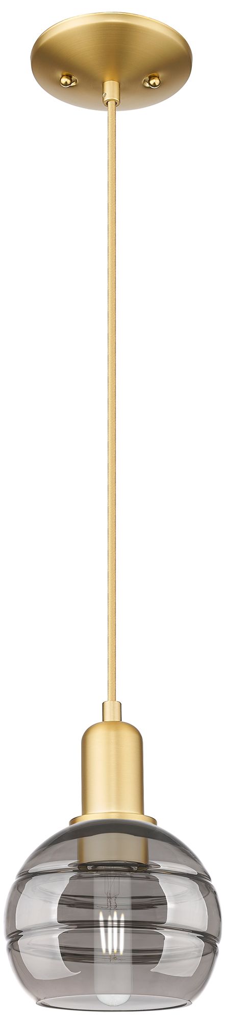 Arcadia Rochester 6"W Gold Cord Hung Mini Pendant w/ Light Smoke Shade