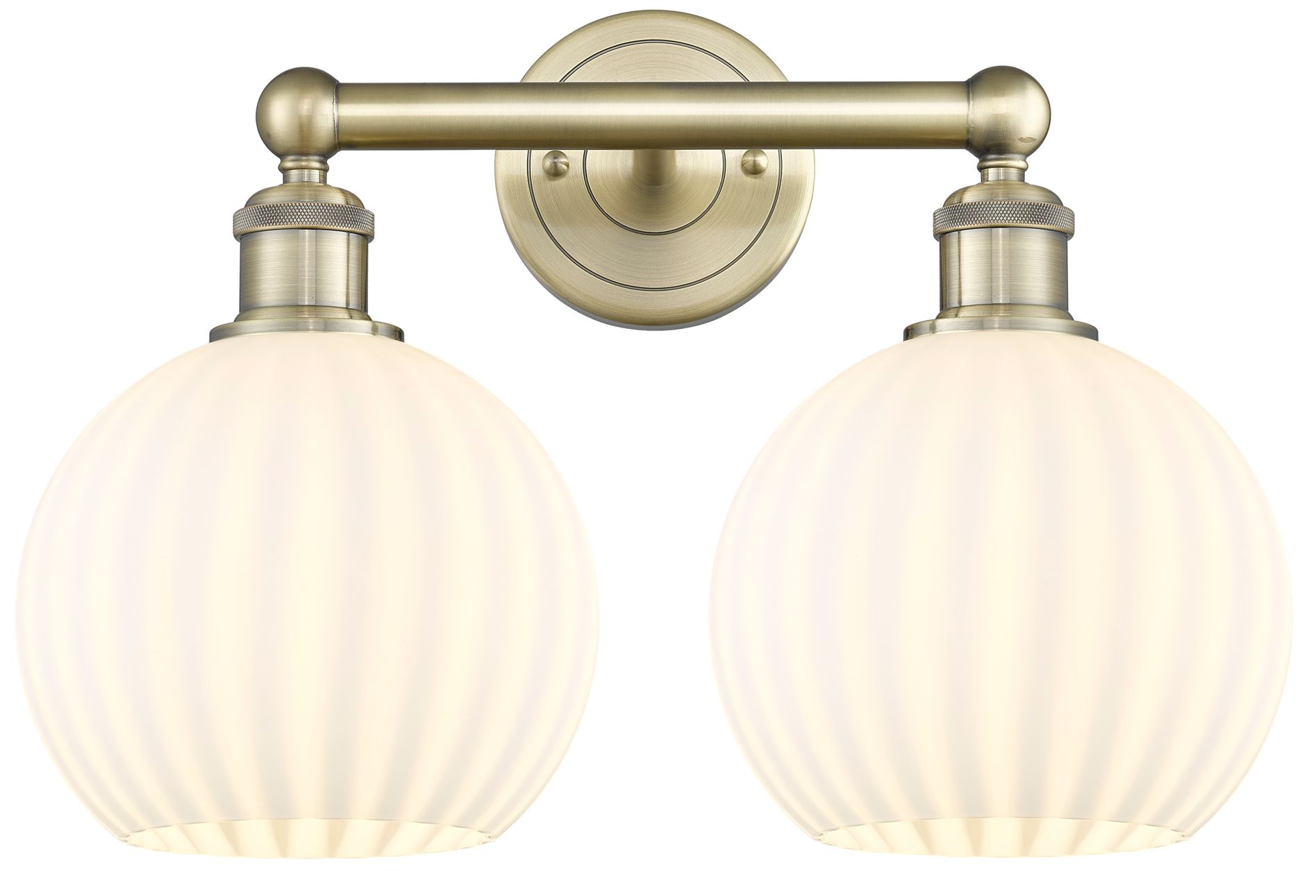 Edison 17" Wide 2 Light Antique Brass Bath Light With White Venetian S