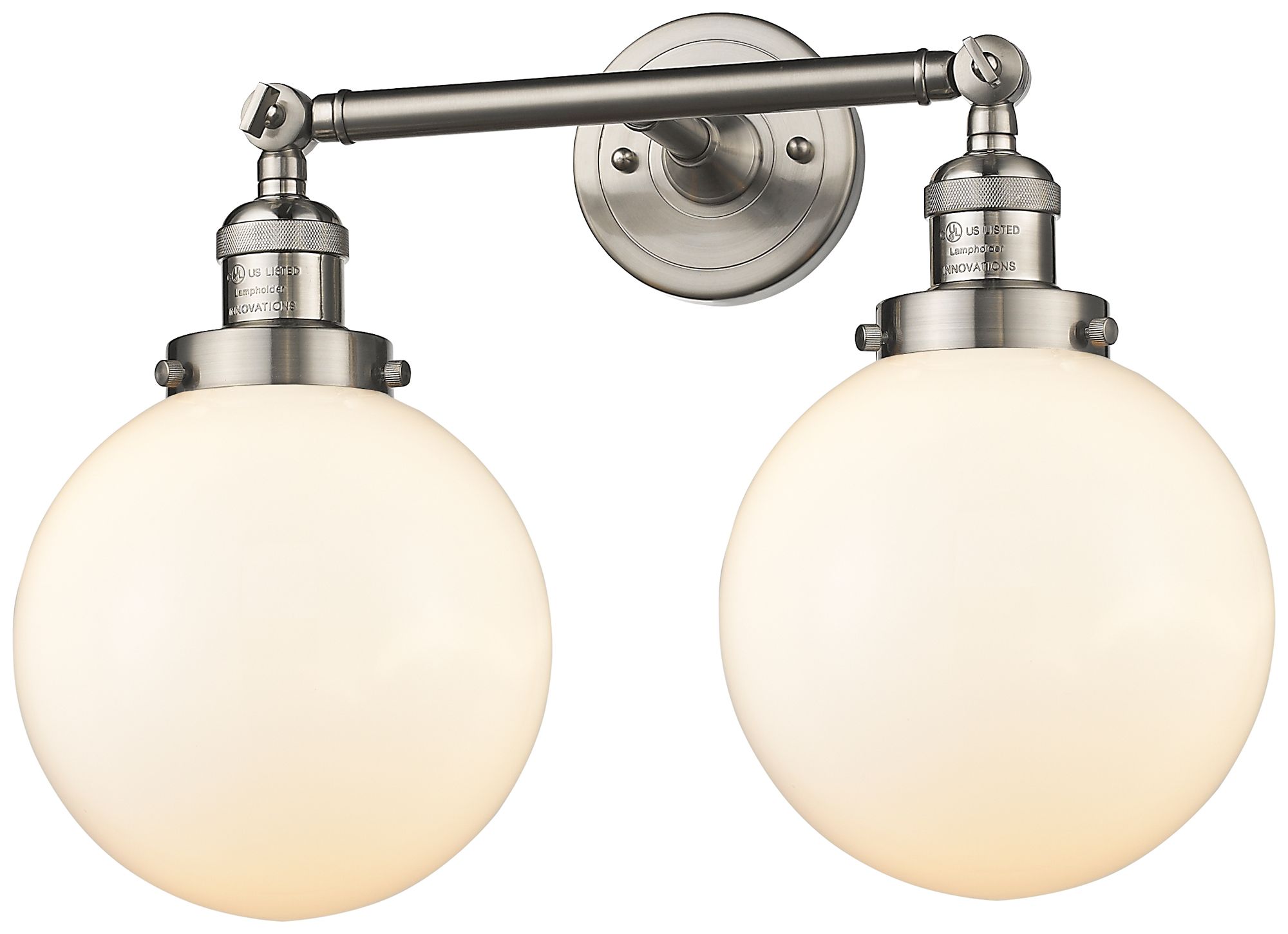Large Beacon 19" 2-Light Brushed Satin Nickel Bath Light w/ White Shad