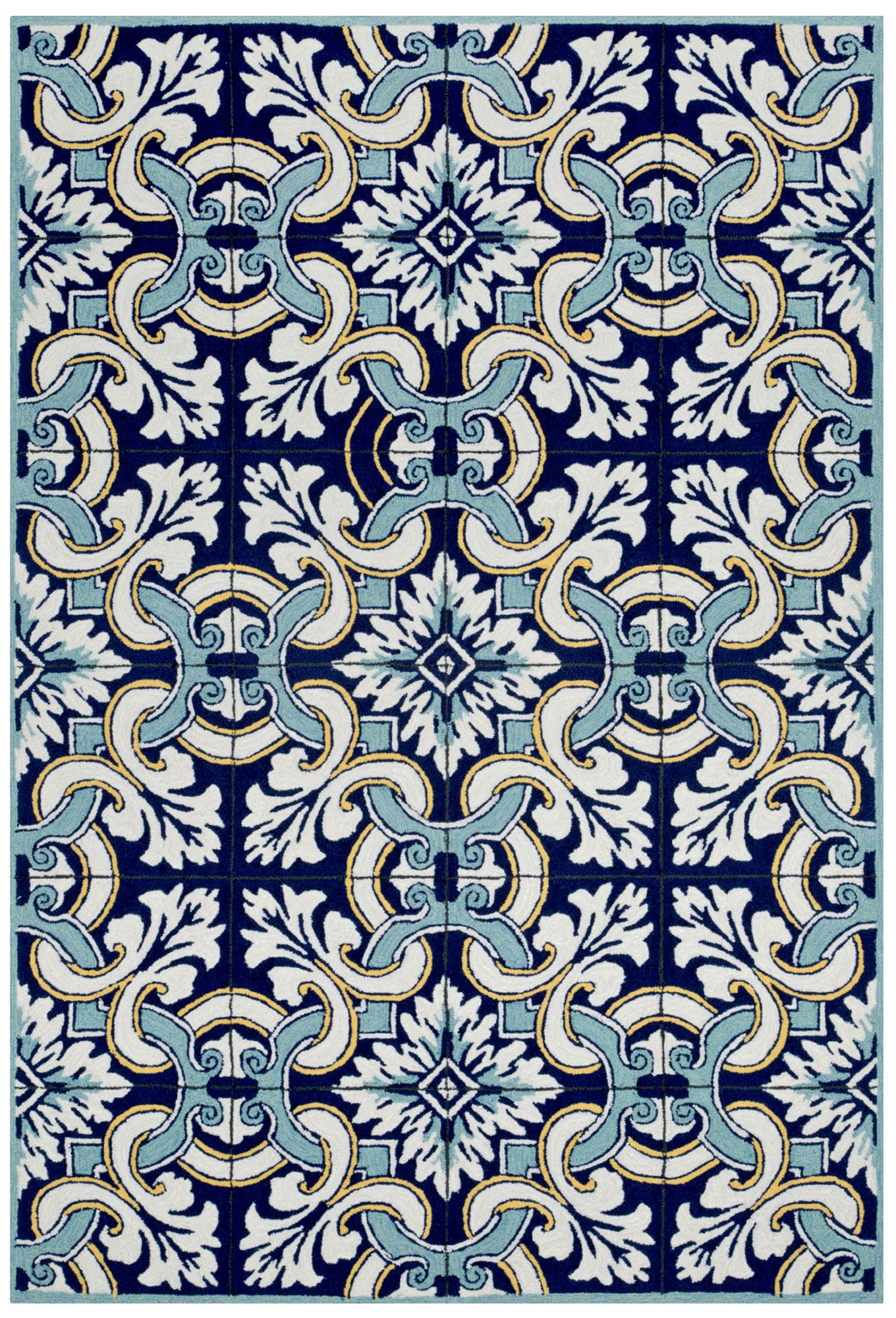 Ravella Floral Tile 2253/33 7'6"x9'6" Navy Outdoor Area R