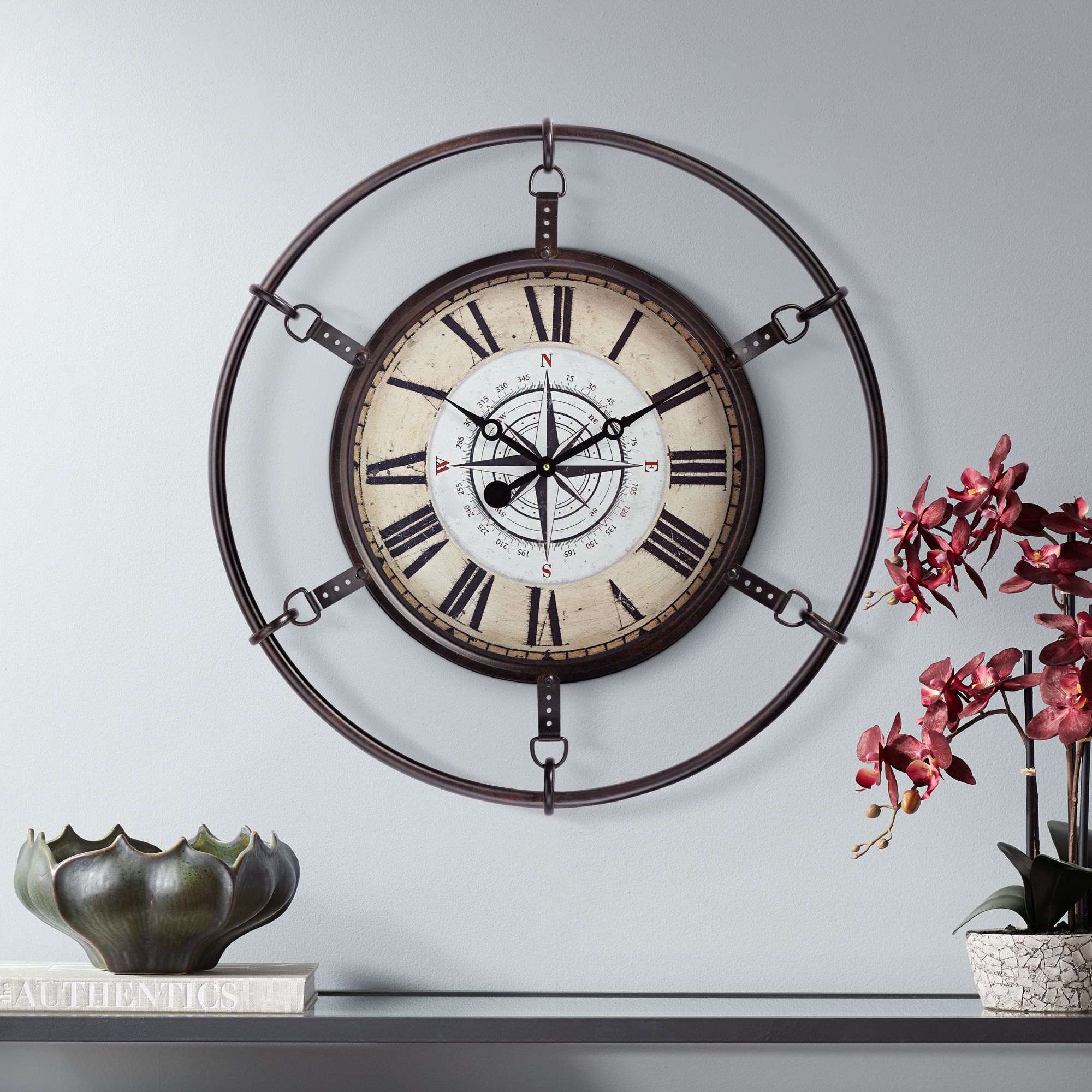 Matte Deep Red 25 1/4" Round Hand-Made Compass Wall Clock