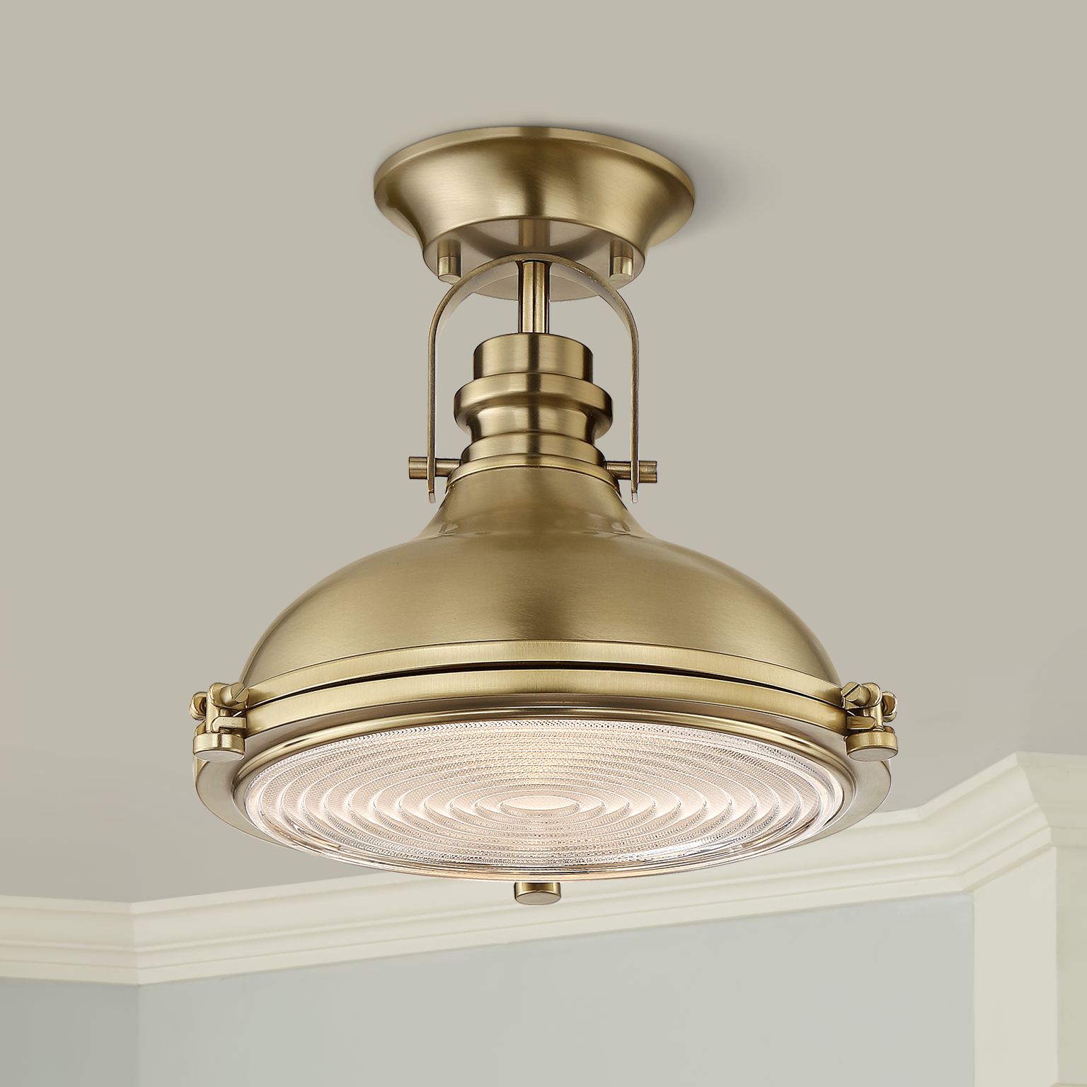 Possini Euro Verndale 11 3/4" Wide Antique Brass Dome Ceiling Light