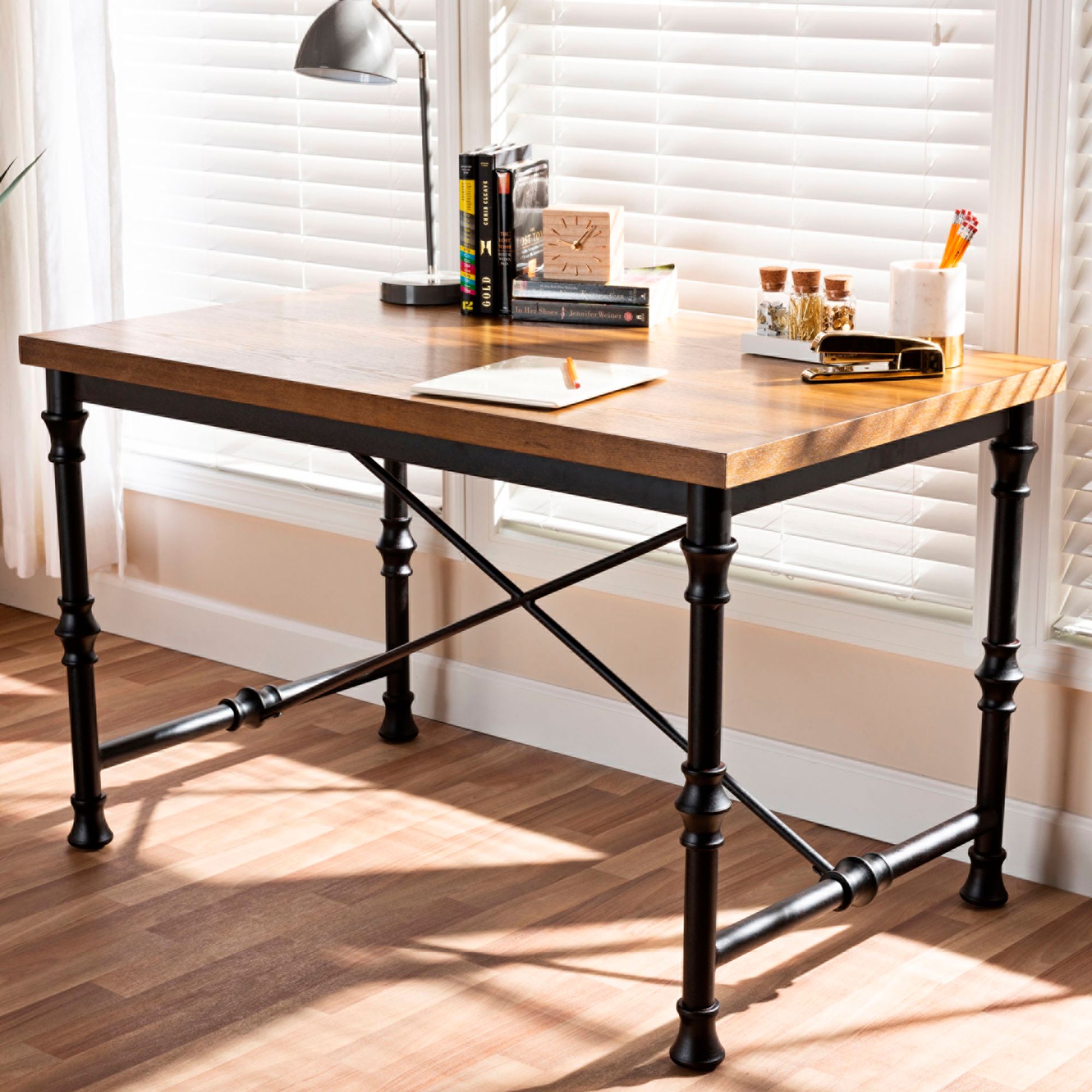 Baxton Studio Verdin 48" Wide Wood and Dark Bronze Criss-Cross Desk