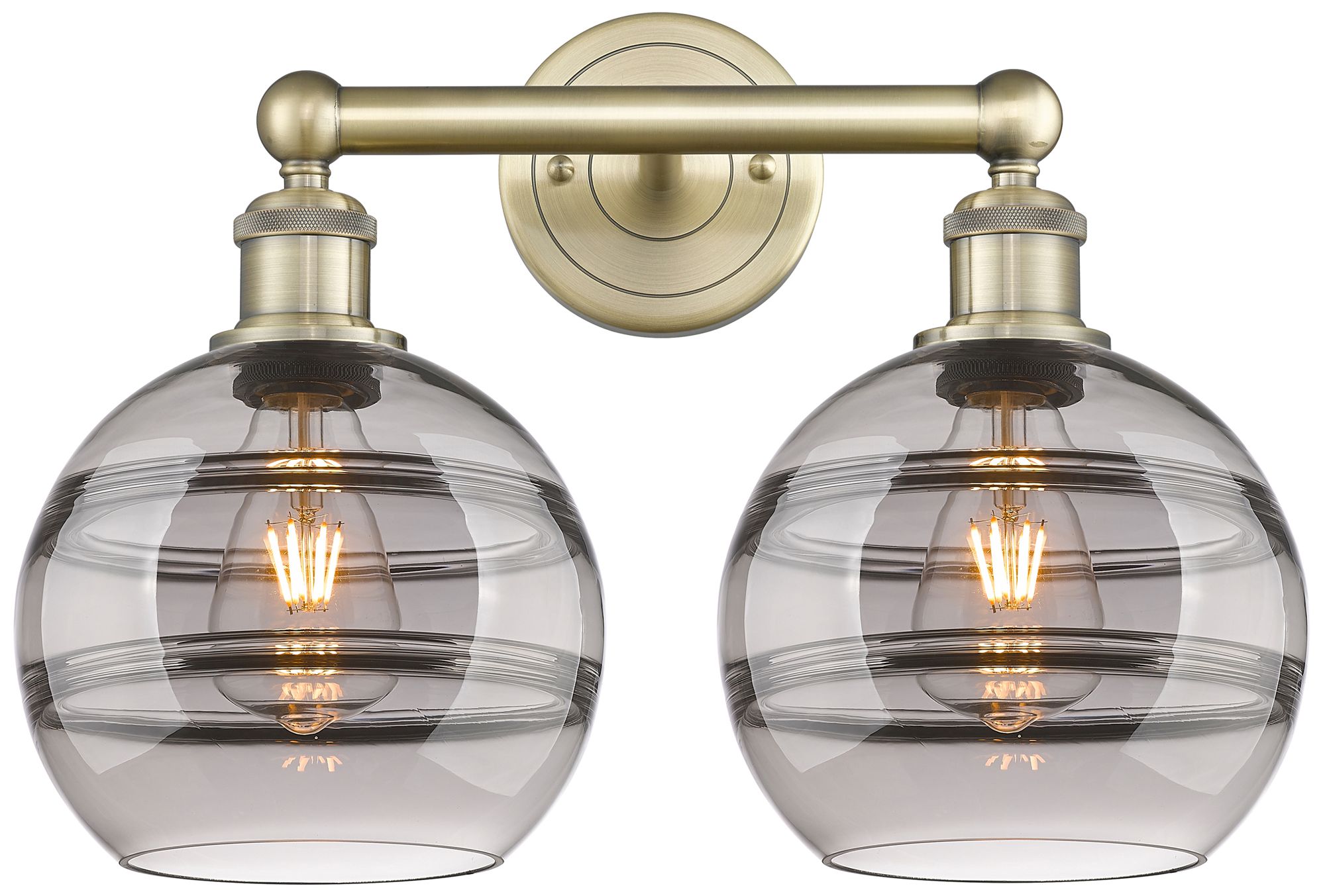 Edison Rochester 17"W 2 Light Antique Brass Bath Light w/ Light Smoke