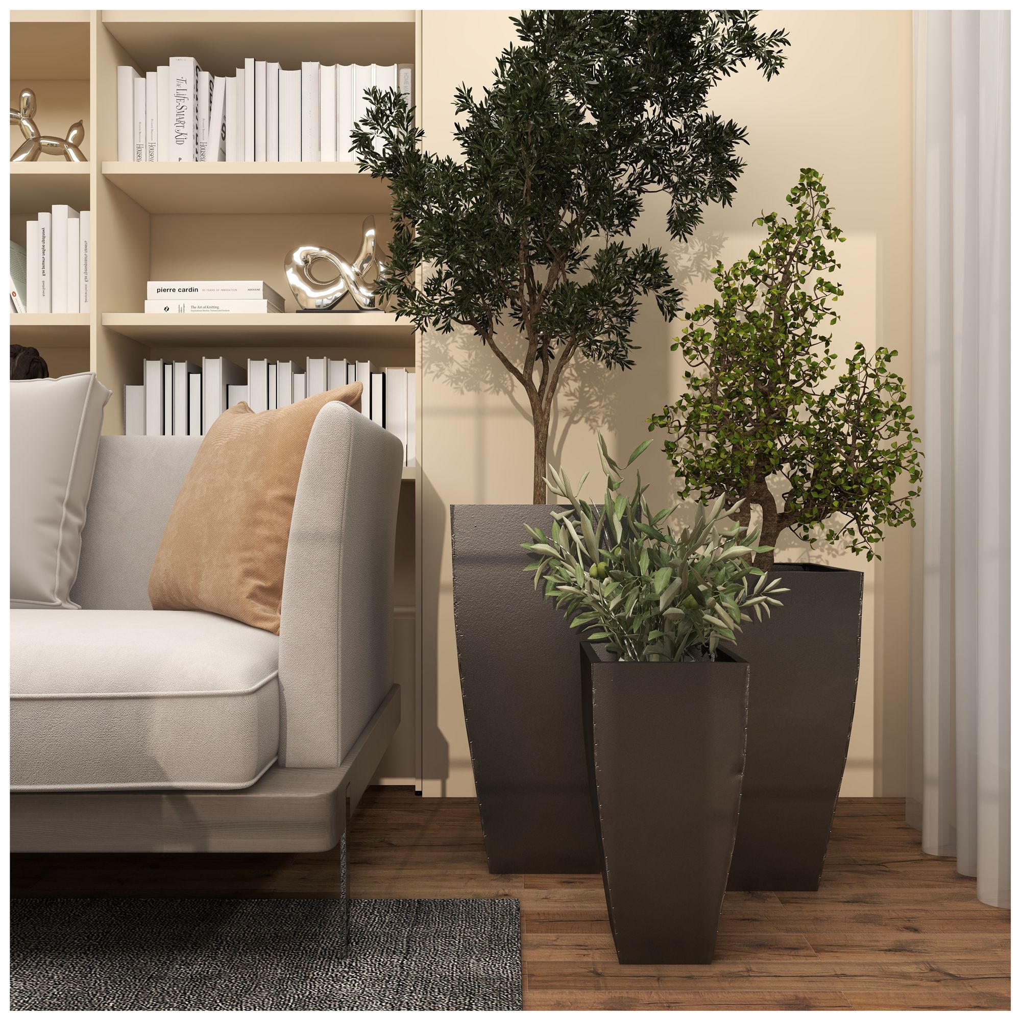 Dark Gray Metal Contemporary Planter, S/3 20", 25", 30"H