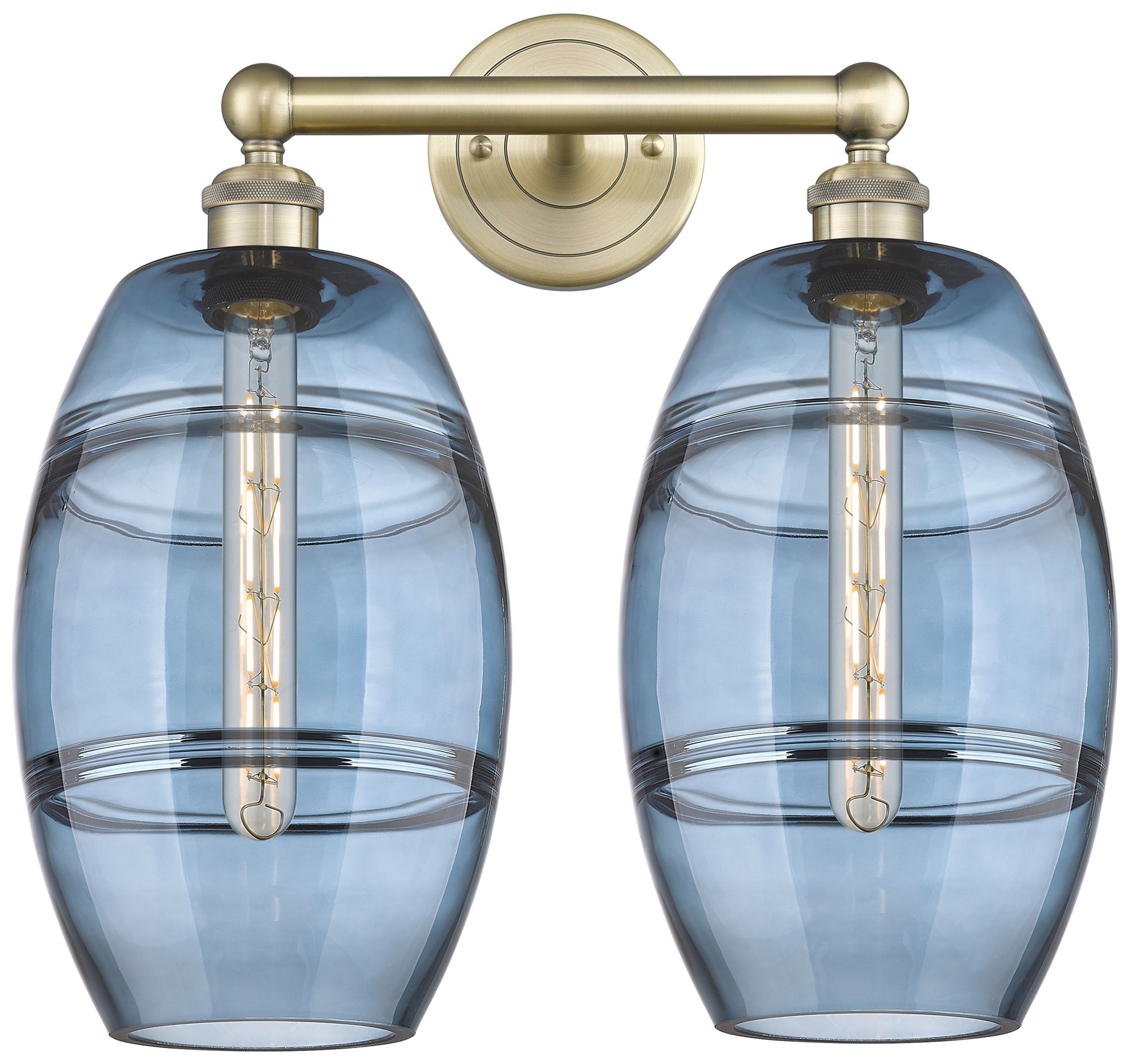 Edison Vaz 17" Wide 2 Light Antique Brass Bath Light w/ Princess Blue