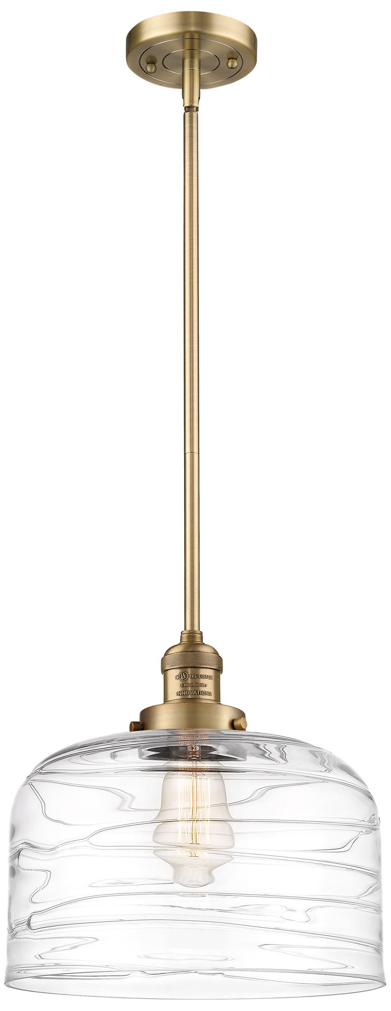 Franklin Bell 12" Brushed Brass Stemmed Mini Pendant w/ Deco Shade