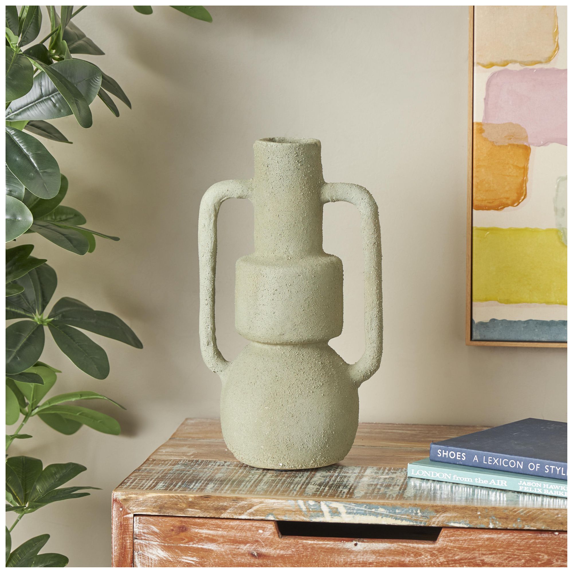 Light Gray Paper Mache Contemporary Vase, 9" x 7" x 16"