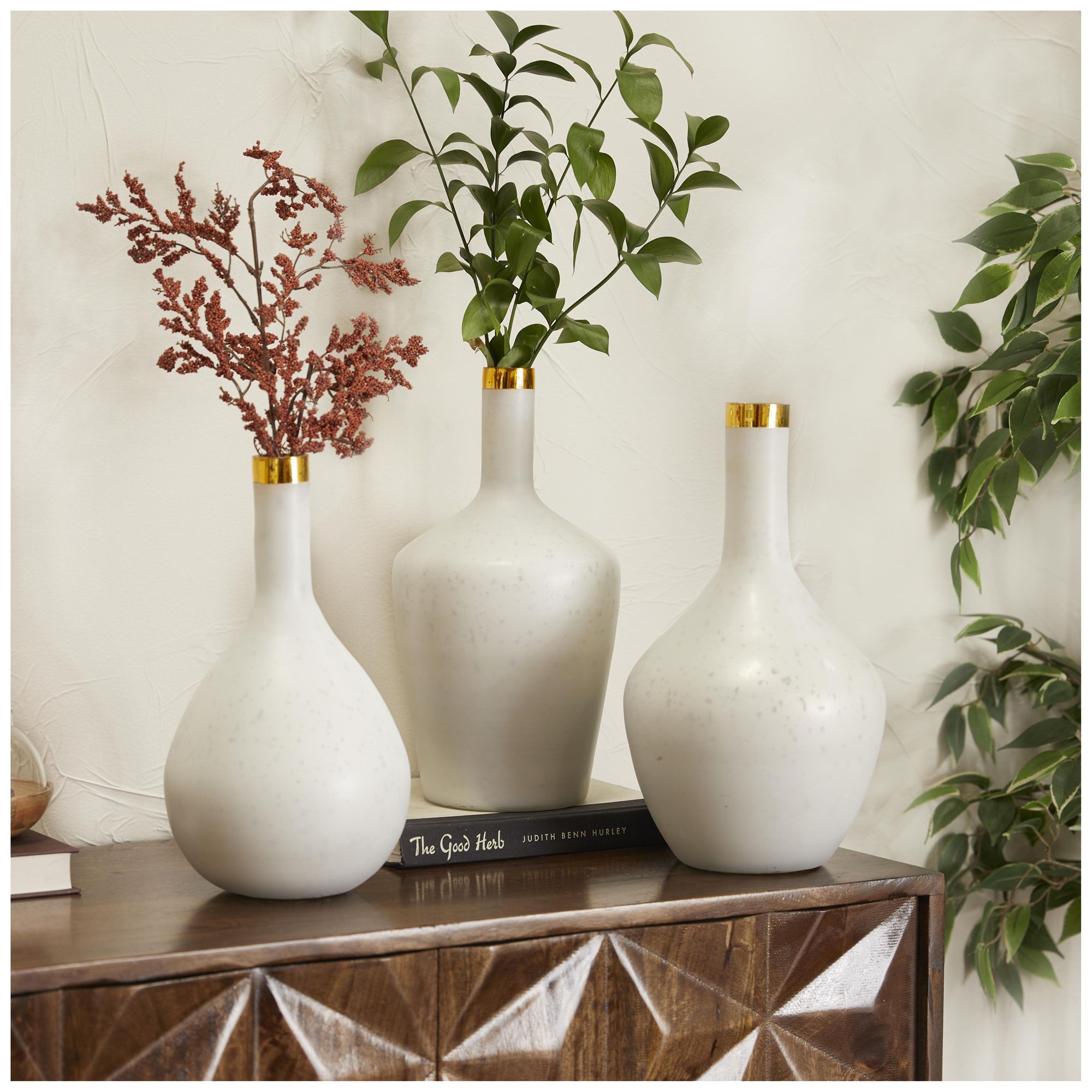 White Glass Glam Vase, S/3 13", 14", 13"H