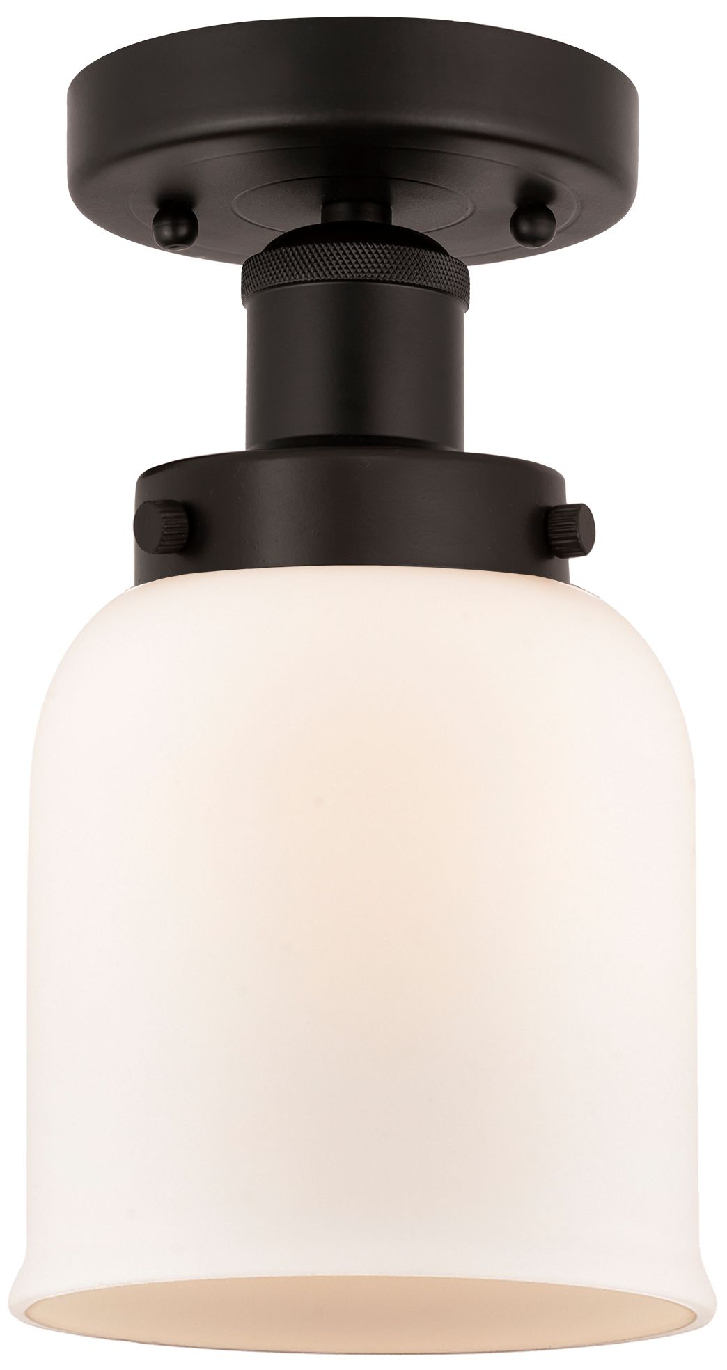 Edison Small Bell 7" Oil Rubbed Bronze Semi Flush Mount w/ White Shade