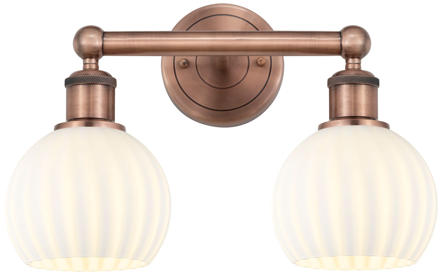 Edison 15" Wide 2 Light Antique Copper Bath Light With White Venetian