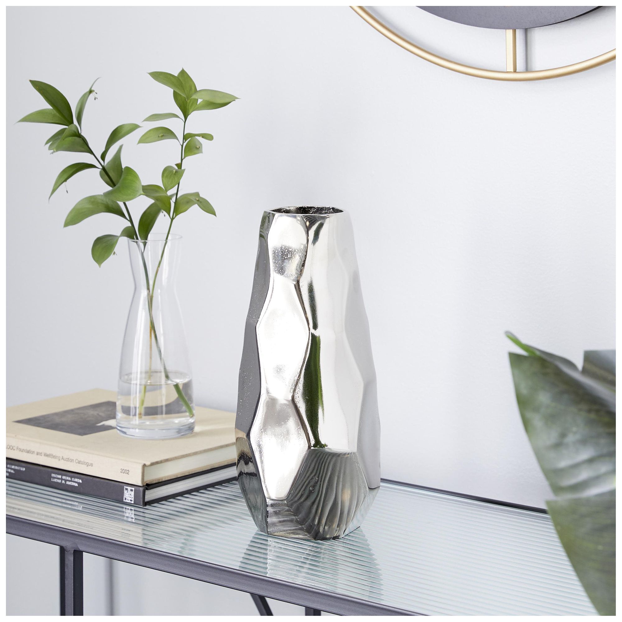 Silver Aluminum Metal Contemporary Vase, 6" x 5" x 12"