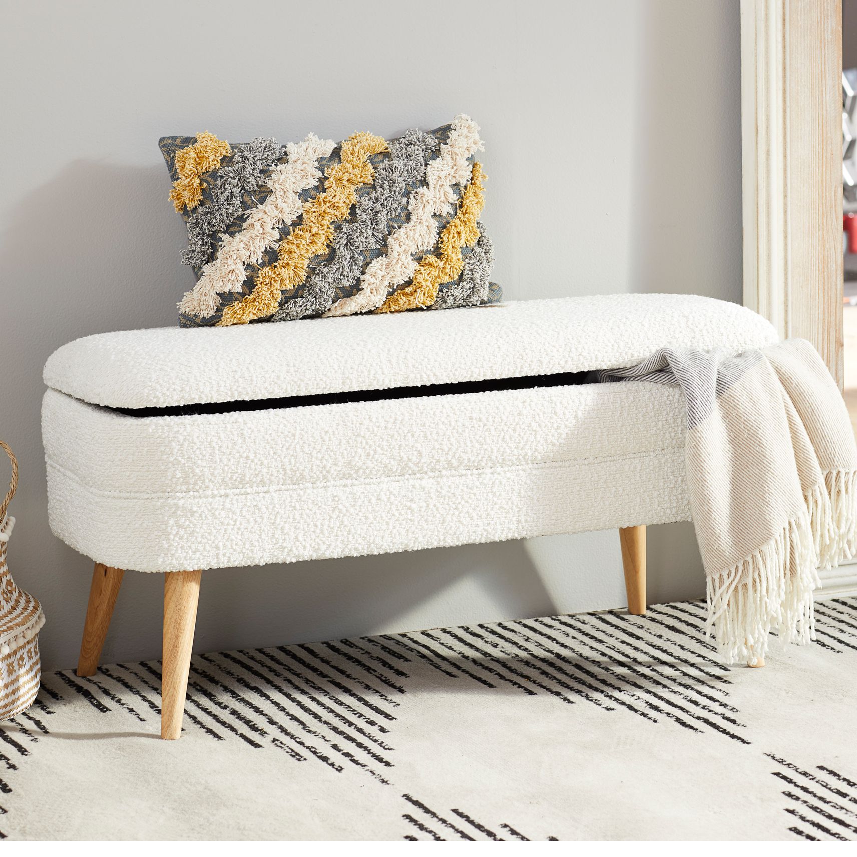 Jenner 40" Wide Textured White Fabric Storage Bench
