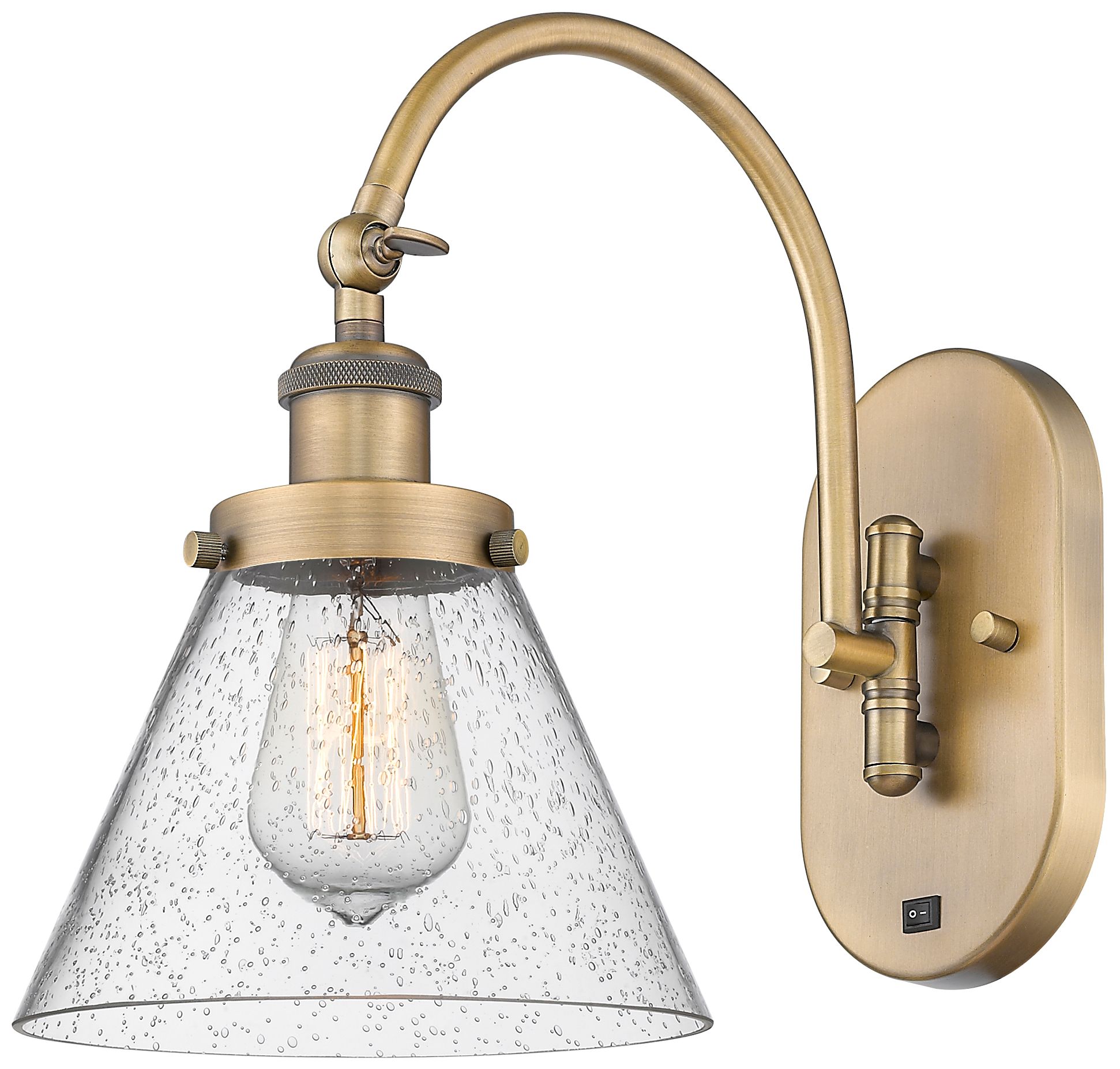 Franklin Restoration Cone 8" Incandescent Sconce - Brass - Seedy Shade