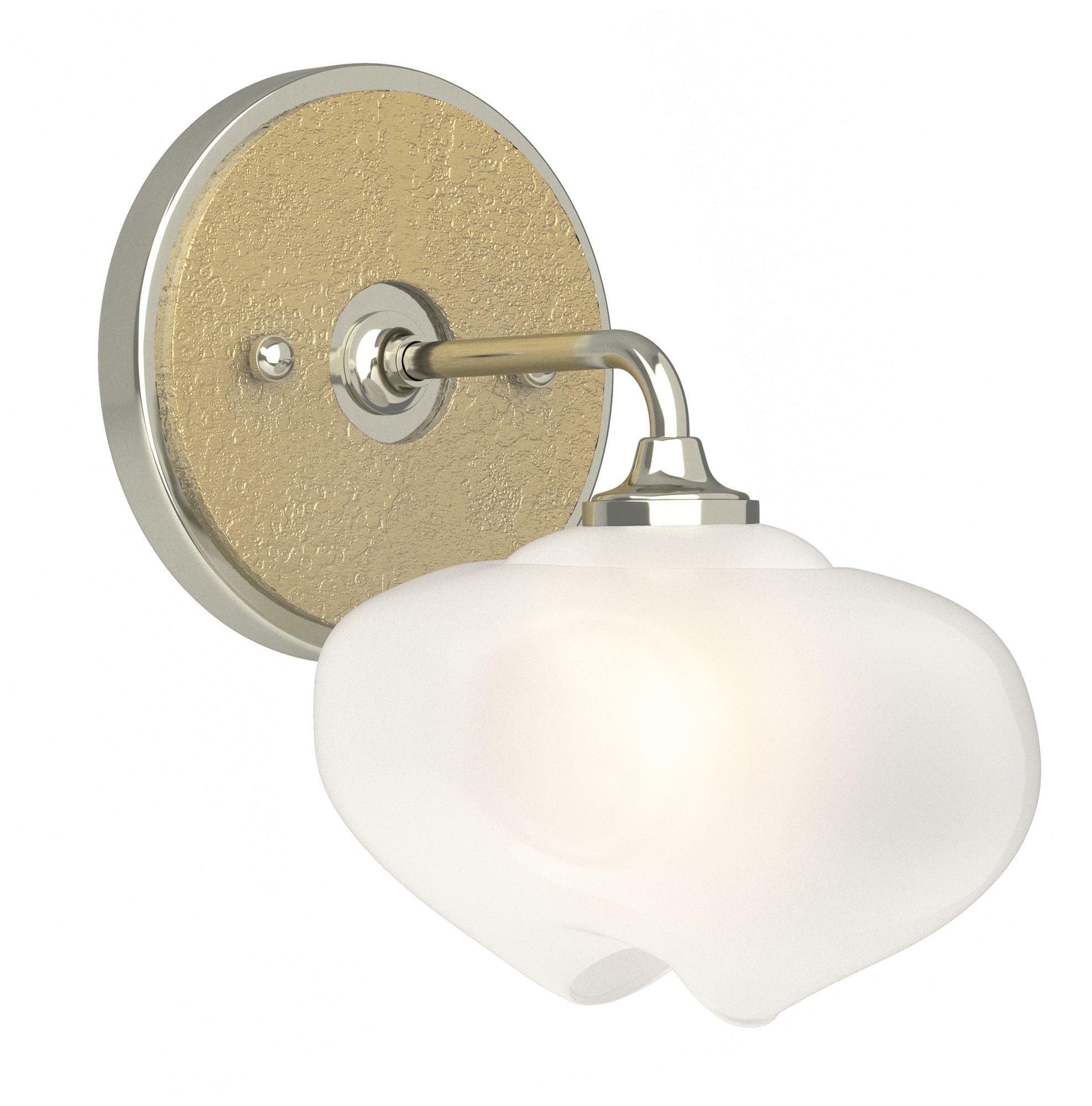 Ume 8.5"H Brass Accented Curved Arm Sterling Bath Sconce w/ Frosted Sh