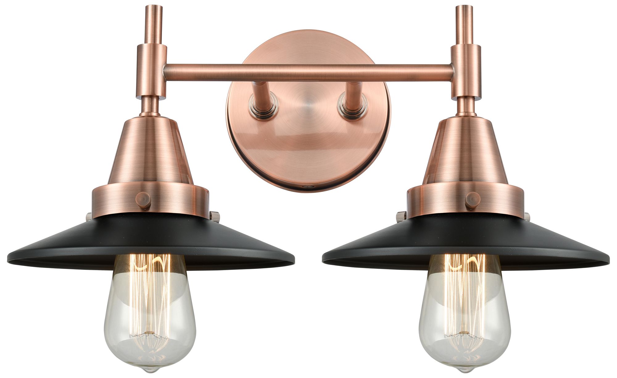 Caden Railroad 17"W 2 Light Copper Bath Vanity Light w/ Matte Black Sh