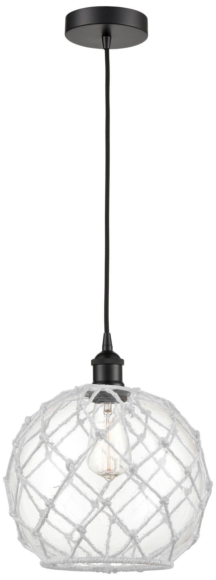 Farmhouse 10" Matte Black Mini Pendant w/ Clear Glass with White Rope