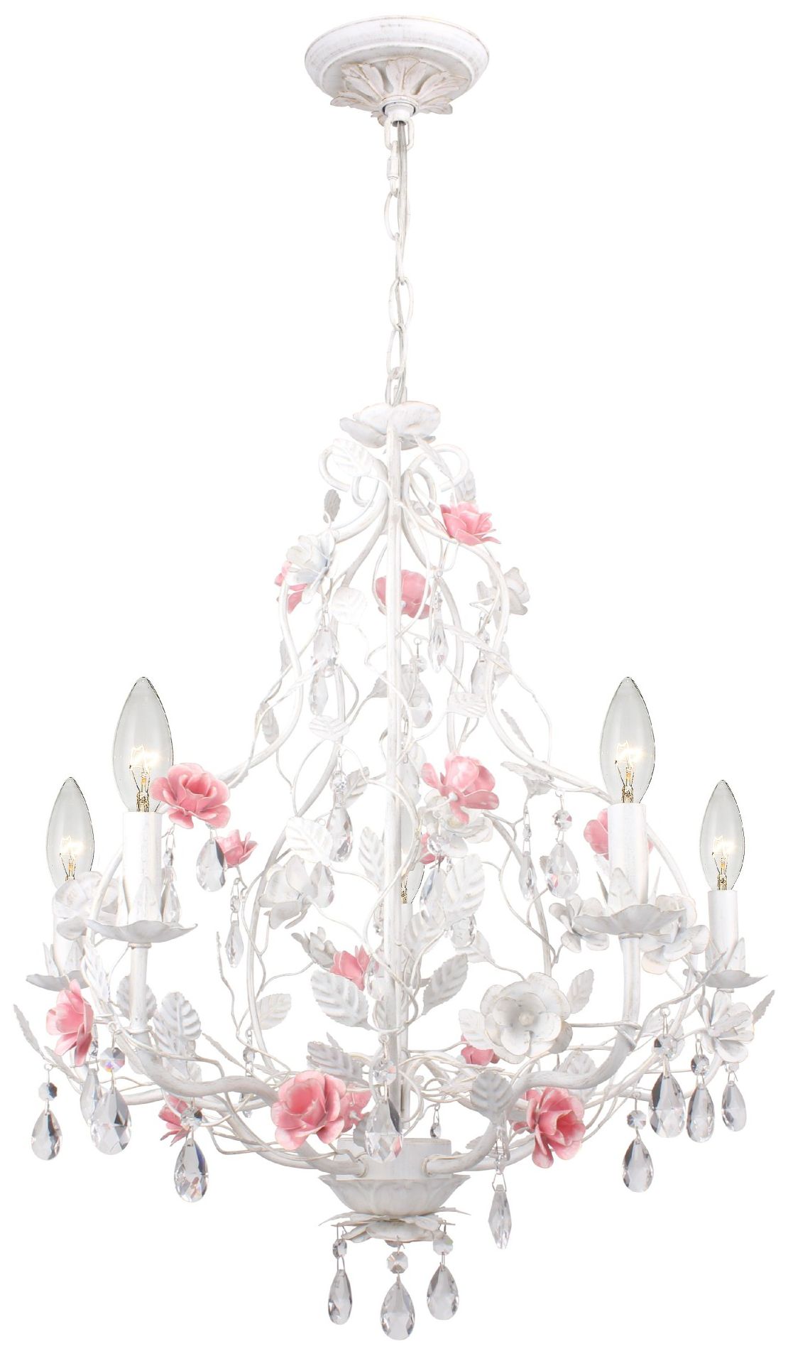 Crystorama Lola 22" Wide Wet White Floral 5-Light Chandelier