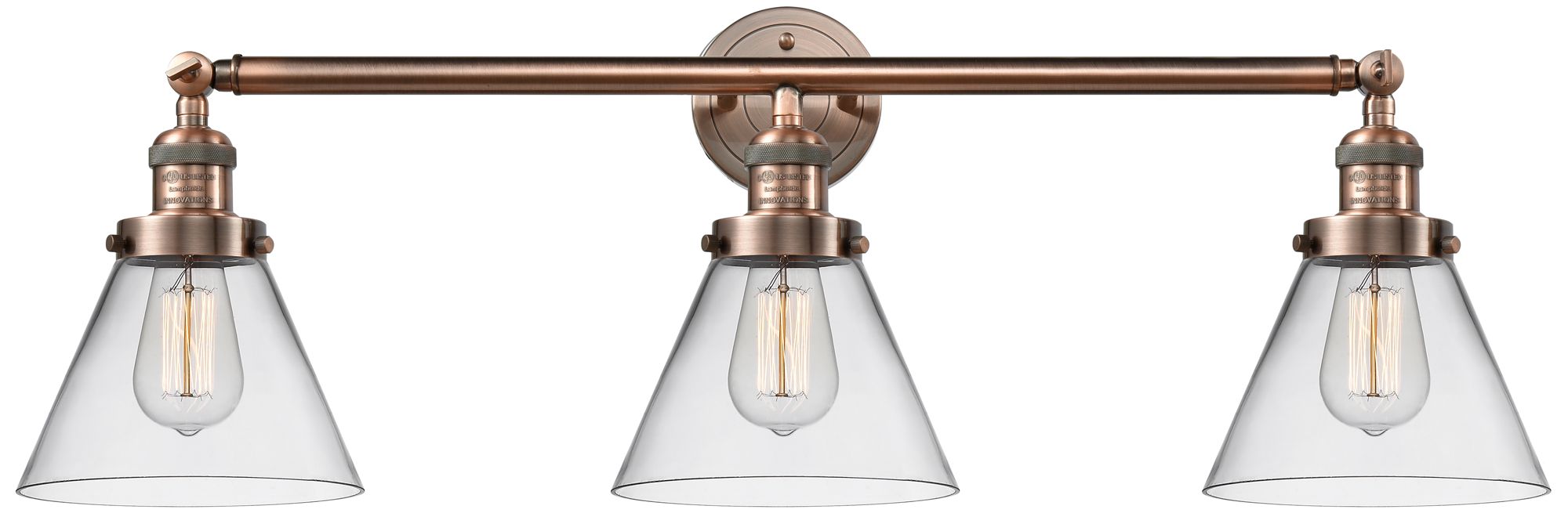 Cone 3 Light 32" LED Bath Light - Antique Copper - Clear Shade