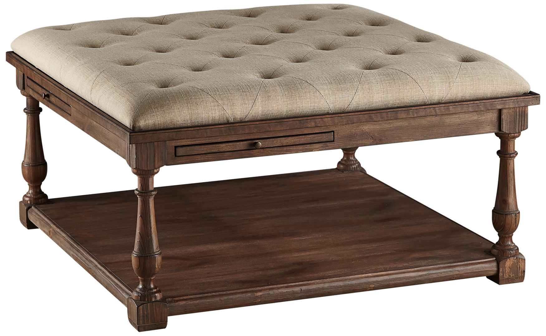 Pemberton 38"W Barnside Wood Tufted Ottoman Cocktail Table