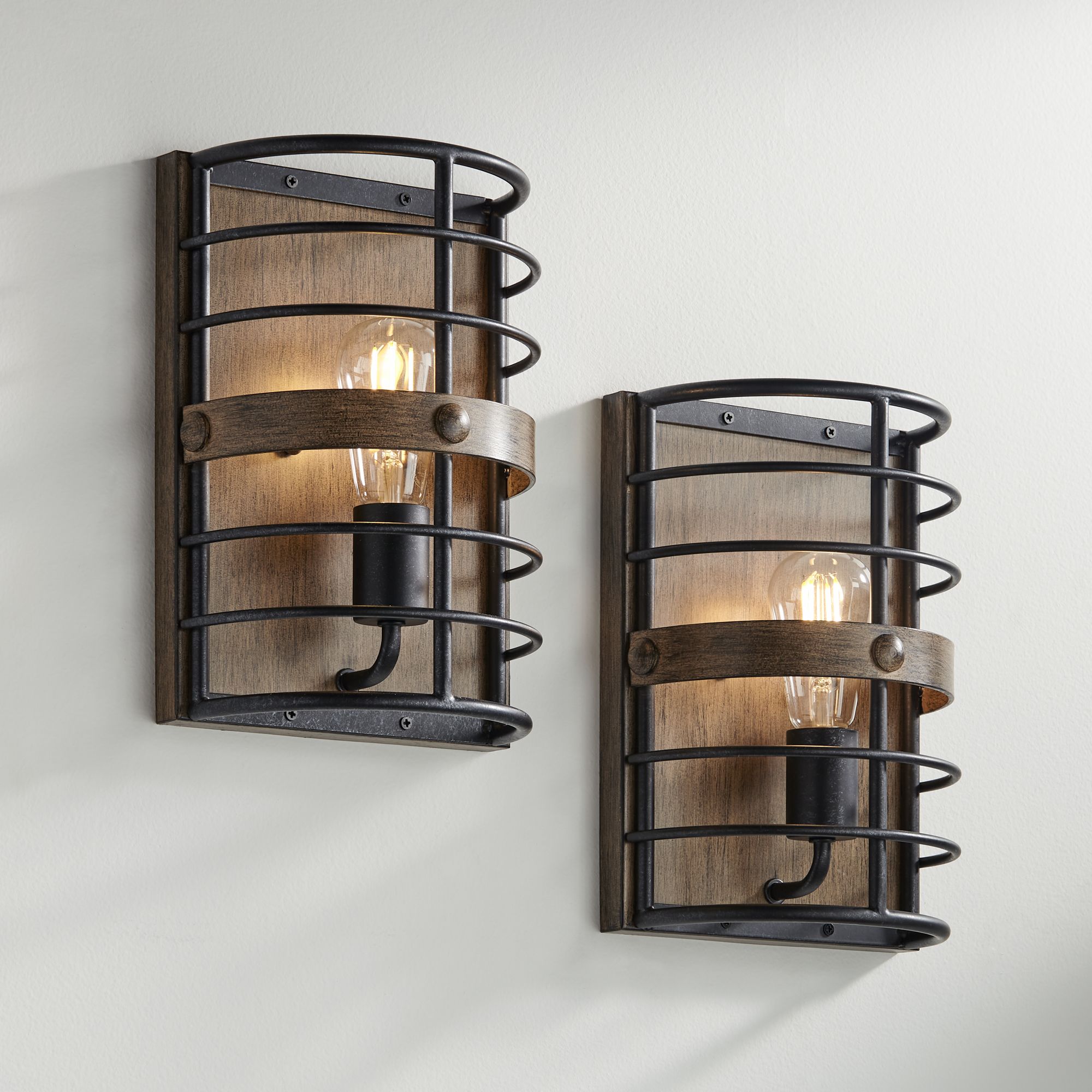 Franklin Iron Lexi 11 1/2" Rustic Bronze Pocket Wall Sconces Set of 2