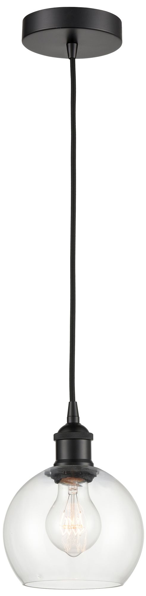 Athens 6" Matte Black Mini Pendant w/ Clear Shade