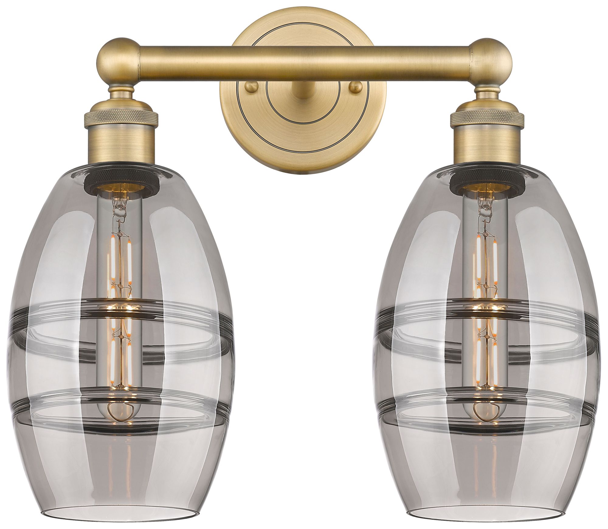 Edison Vaz 14.88"W 2 Light Brushed Brass Bath Light w/ Light Smoke Sha