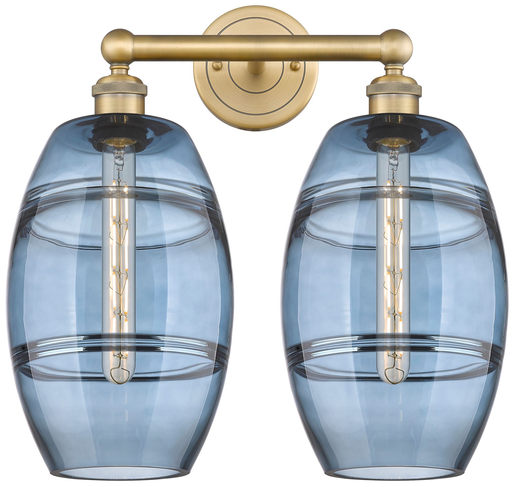 Edison Vaz 17" Wide 2 Light Brushed Brass Bath Light w/ Princess Blue